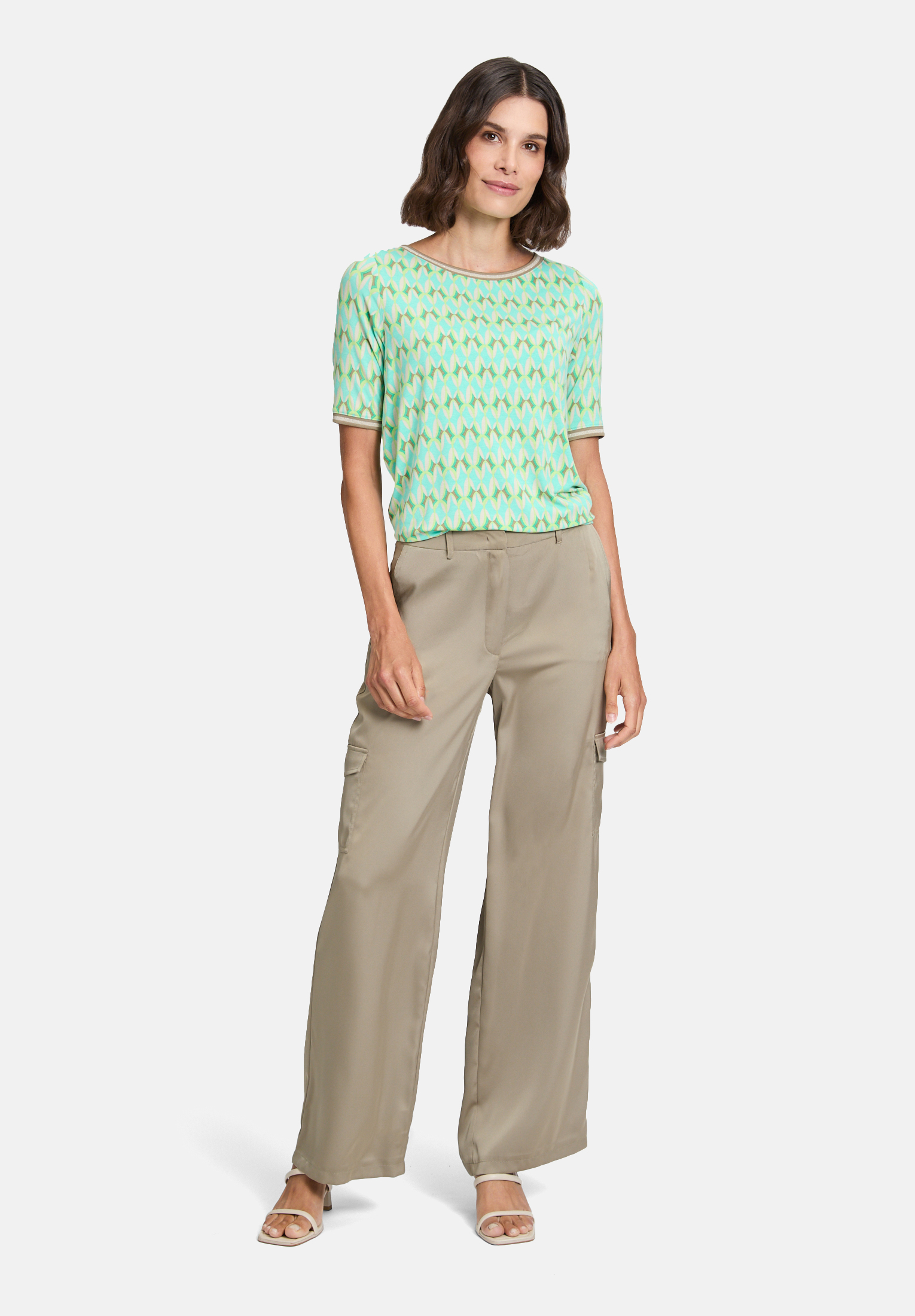 Повседневная рубашка с короткими рукавами и вырезом-лодочкой добавит свежести вашему образу в свободное время благодаря графичному дизайну. Ребристые манжеты добавят игривости. Свободный крой обеспечивает комфортный и стильный образ, универсальный и идеально подходящий для отдыха.