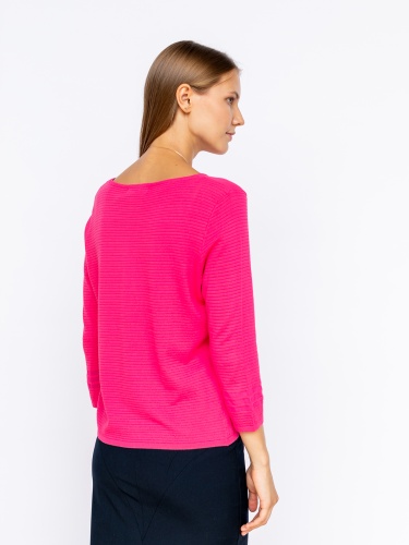 На сайте указаны российские размеры. Ткань: смесовая эластичная ткань. В составе:15% полиамид, 60% вискоза, 25% полиэфир. Крой: джемпер прямого силуэта с рукавом ¾ и круглым вырезом. Эластичность материала позволяет изделию садиться на разные типы фигур, а достаточная плотность – не подчеркивать недостатки фигуры. Отделка: яркий цвет в сочетании с объемной фактурой – именно так в Stern представляют стиль современной женщины, живущей полной жизнью. В ассортименте Stern вы найдете сотни вариантов для создания ярких образов с этим джемпером. Загляните в разделы брюк, юбок и джинсов.