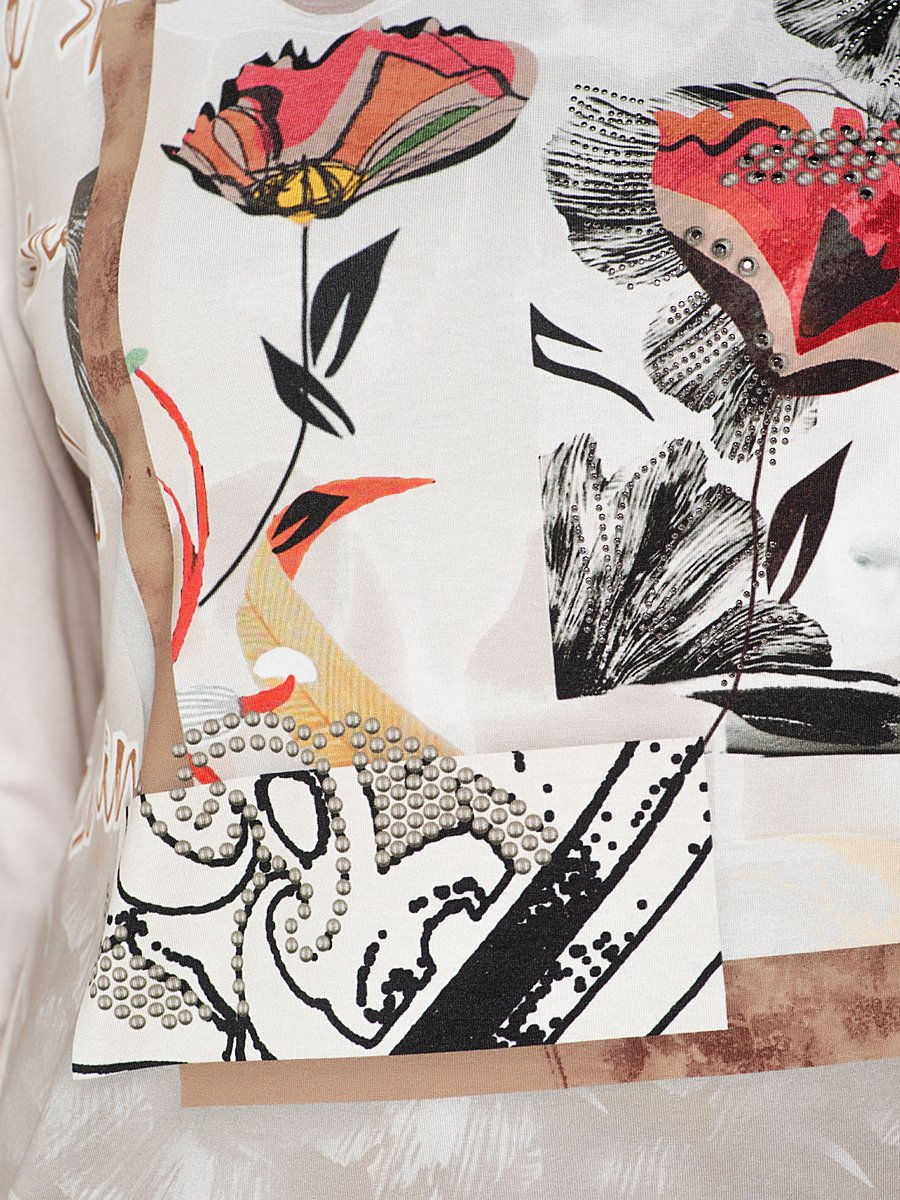 Футболка с длинными рукавами - отличный выбор для повседневного образа. Прямой покрой, круглый вырез горловины. Контрастная отделка с нитью люрекса создает легкие акценты, которые оттеняют цветочный принт. Приятный к телу эластичный материал с вискозой и модалом обеспечивает комфорт в ношении.