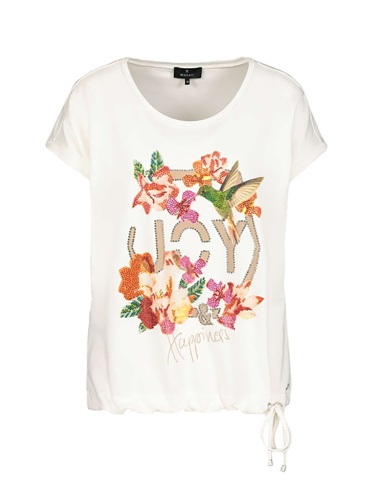 На сайте указаны Российские размеры. Футболка с принтом в стиле кэжуал, идеально дополнит повседневный образ. Короткий сплошной рукав, овальный вырез горловины, кулиска по низу изделия.