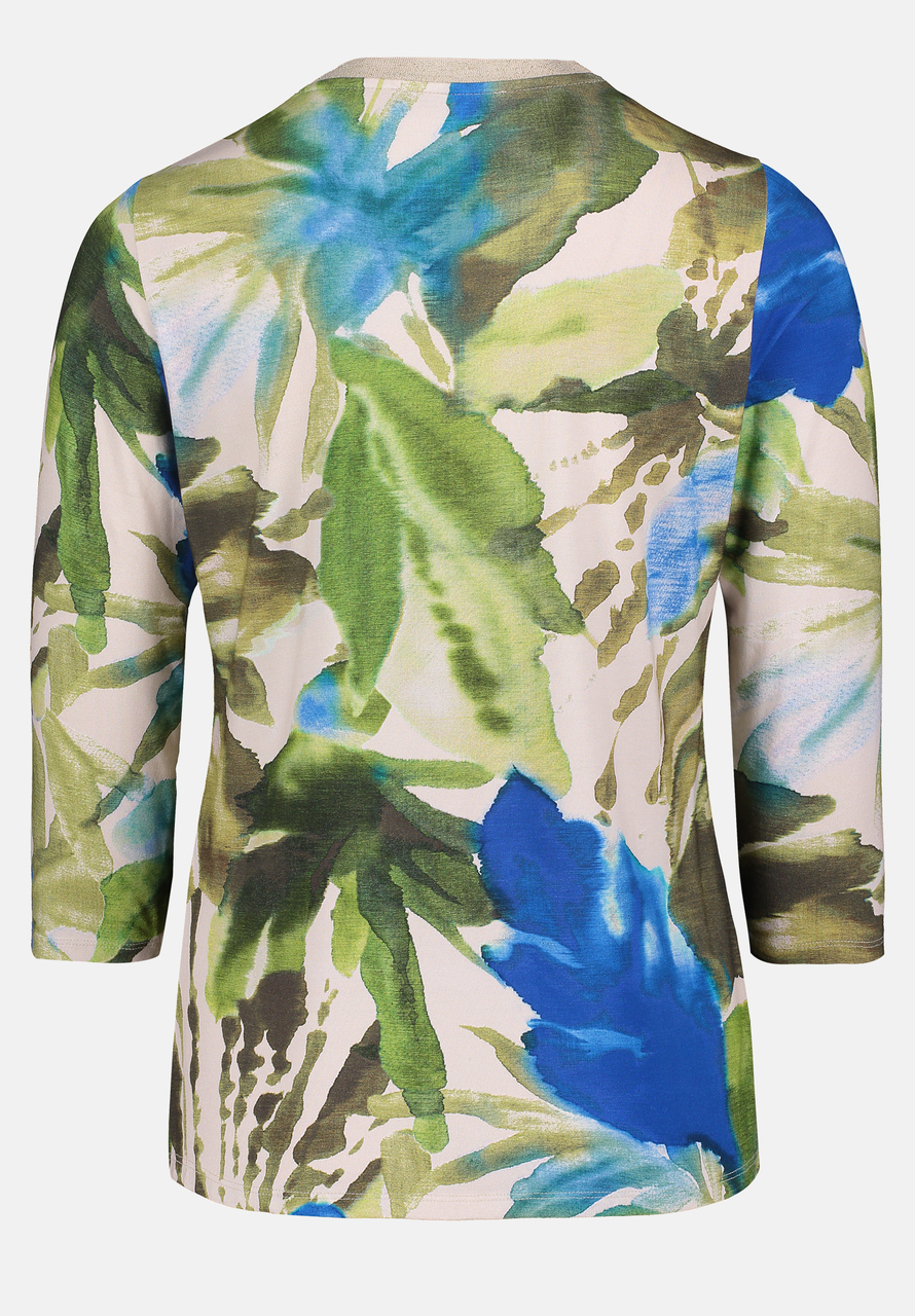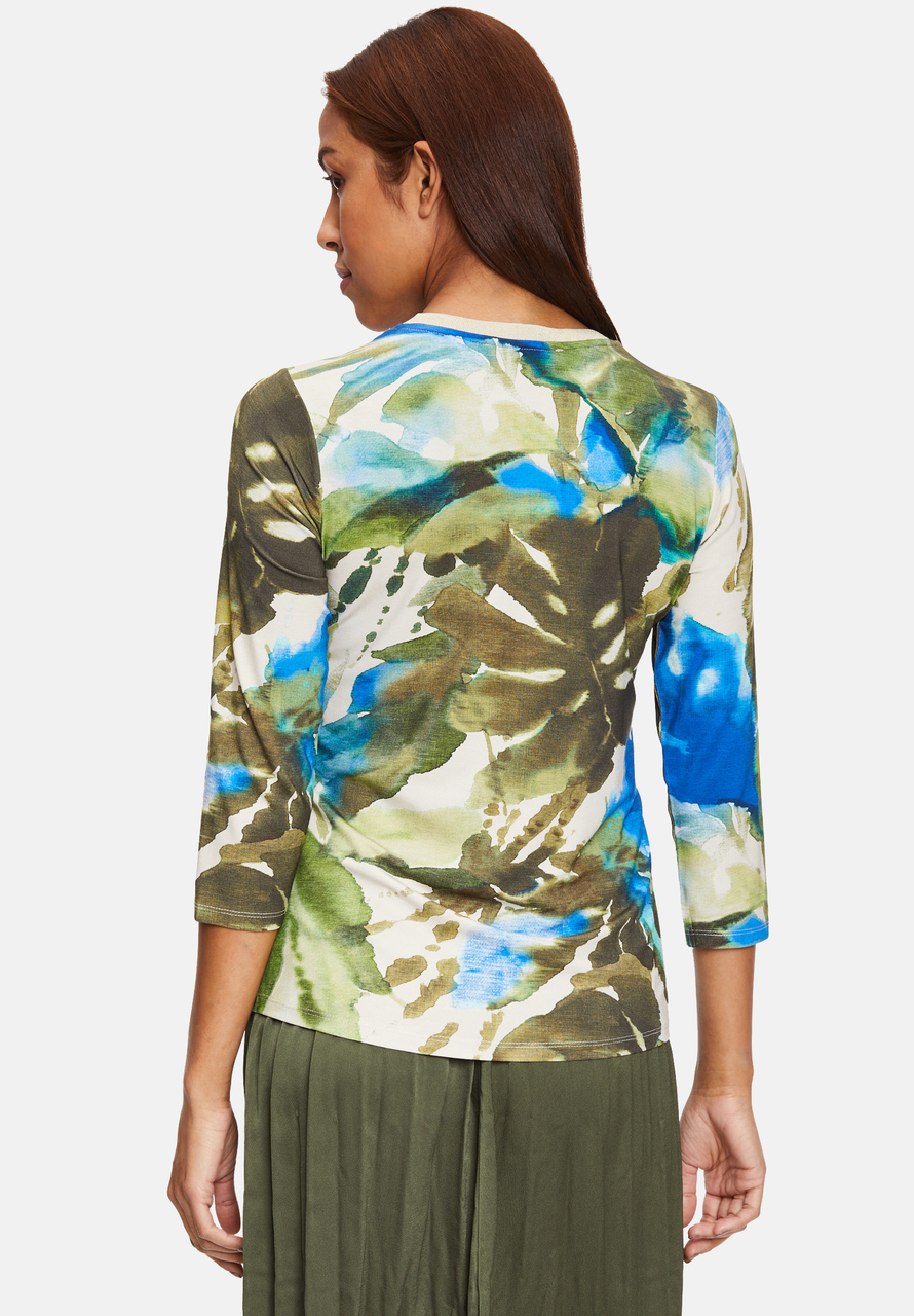 Базовая рубашка с принтом. Приталенный крой и материал из вискозы обеспечивают удобную посадку верха. Рукава 3/4. Длина 64 см.