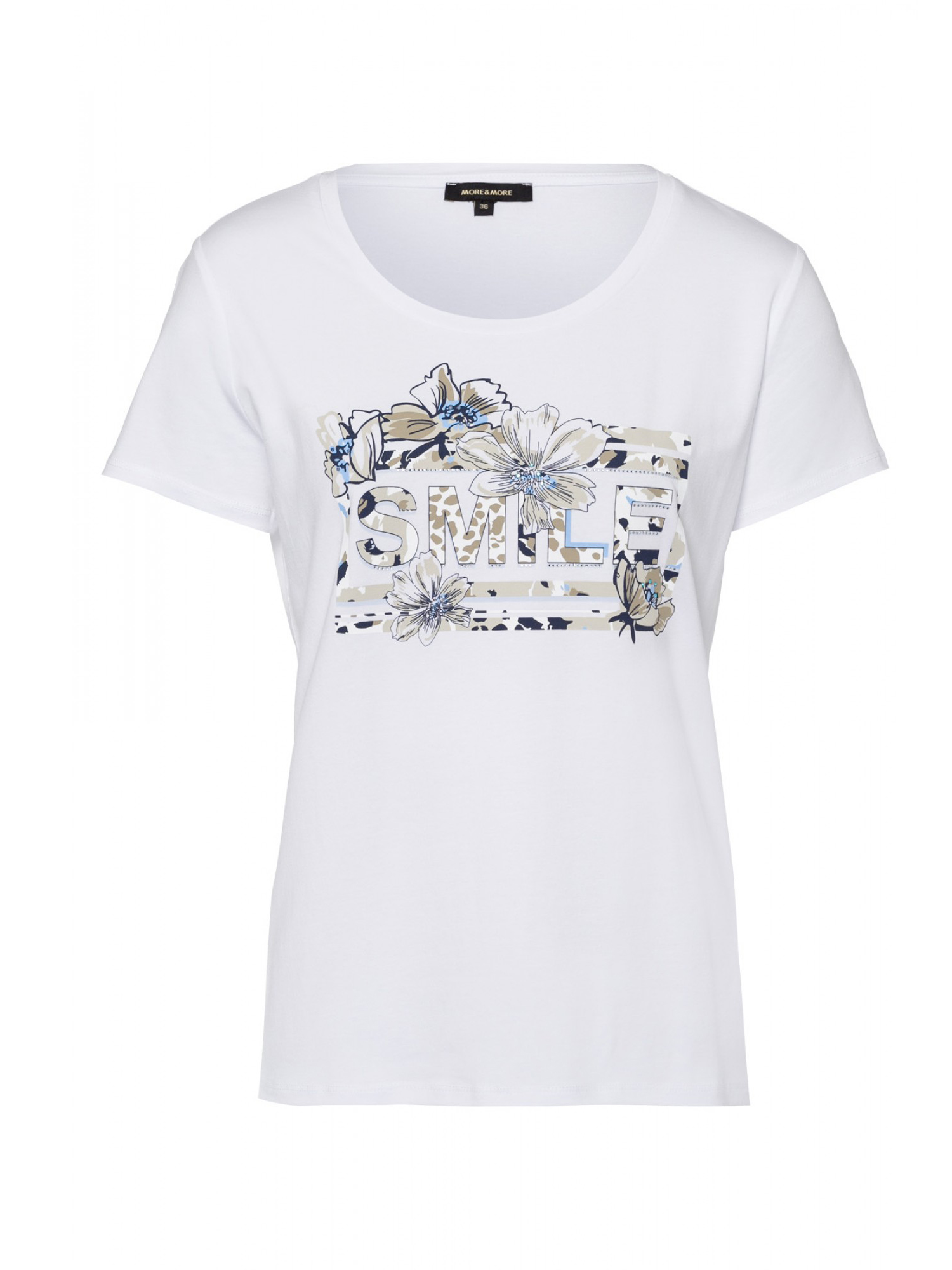 Базовая футболка белого цвета с цветочным принтом спереди. - прямой крой - круглый вырез - с коротким рукавом - приятная смесь хлопка и модала - длина по размеру 42 = 62 см