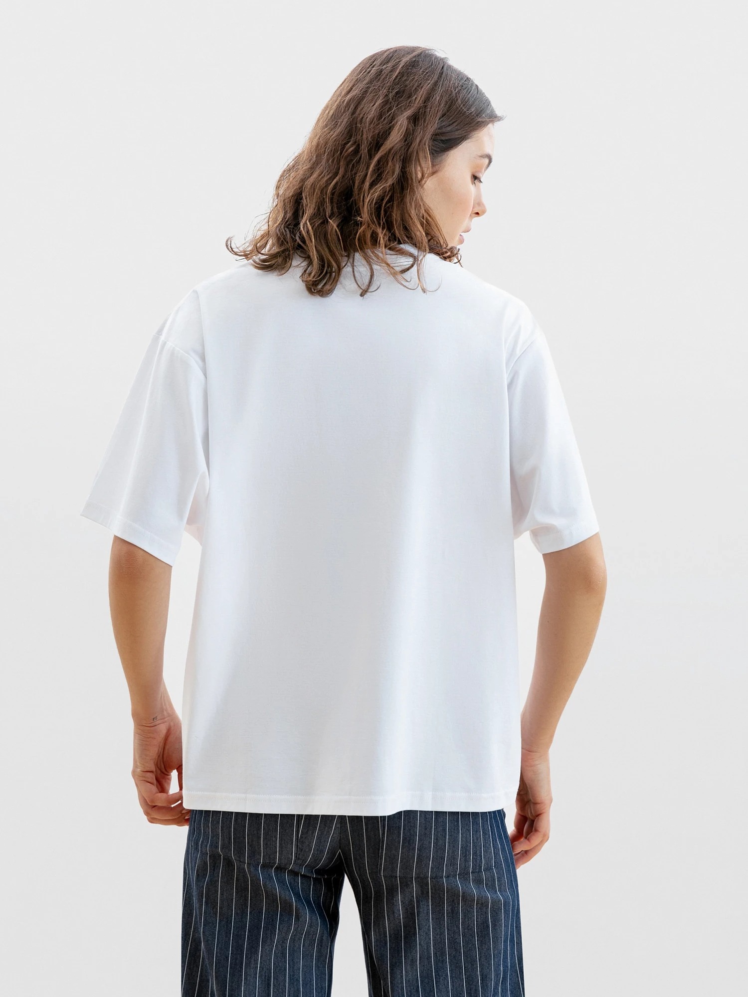 На сайте указаны российские размеры. Классическая белая футболка из 100% мерсеризированного хлопка прямого силуэта с круглой горловиной, спущенным плечом и коротким рукавом. Спереди цветочный моно-принт в бежевом цвете. Идеальное дополнение к повседневному образу. Рост модели на фото - 175 см.