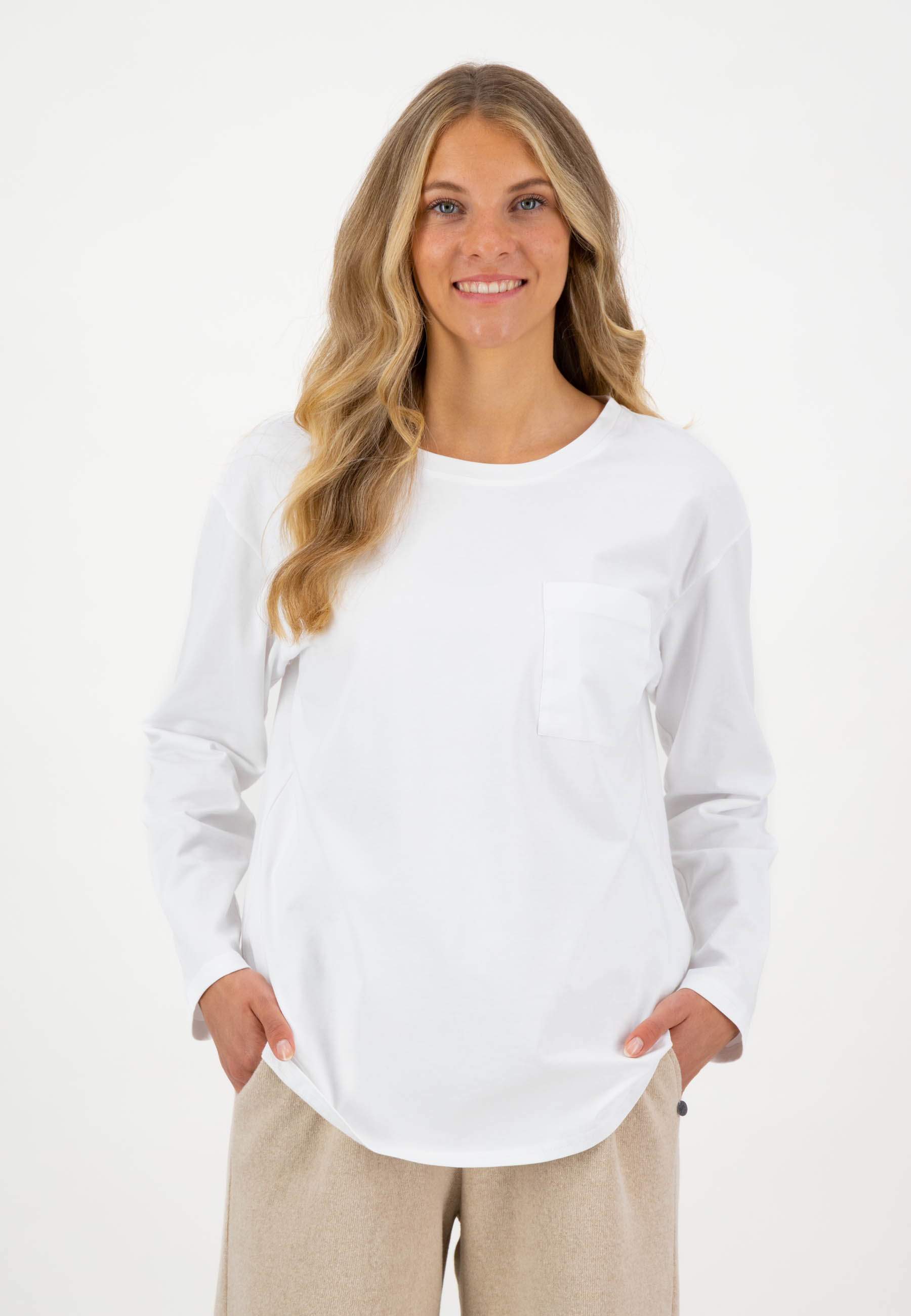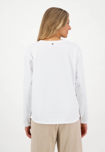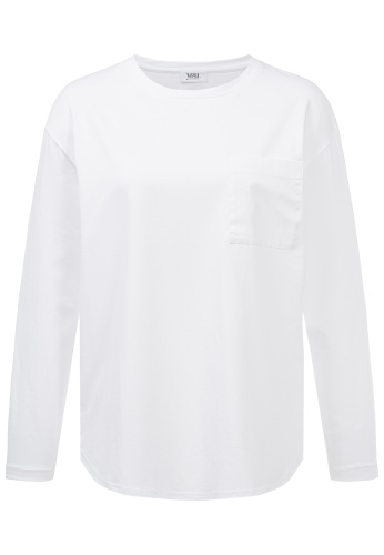 На сайте указаны российские размеры. Белая футболка с рукавами из джерси с нагрудным карманом и закругленным низом. Девиз этой модели – легкая в носке мода. Белая футболка изготовленна из экологически чистых материалов. Благодаря свободному крою она не только удобна, но и повседневна. Стильный образ подчеркивают закругленный низ и нагрудный карман слева — идеальное сочетание для универсальных нарядов. Наша модель ростом 177 см. Измерения для размера 44: Окружность груди: 105 см Талия: 106 см Бедра: 109 см Длина спинки: 65 см. Длина рукава: 55 см.
