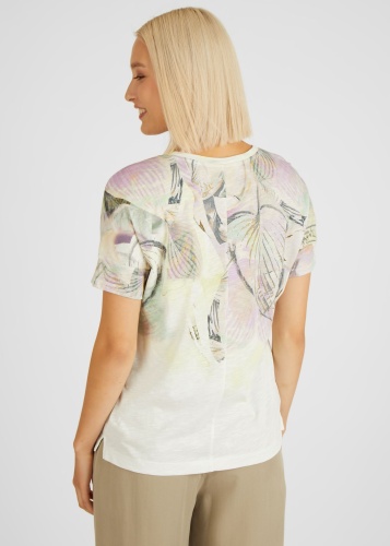 На сайте указаны российские размеры. Эта футболка с короткими рукавами сразу привлекает внимание своим экзотическим дизайном. Сплошной цветочный принт украшен яркими словами. Внутренний шов в размере 44: 62 см. Рост модели 176 см