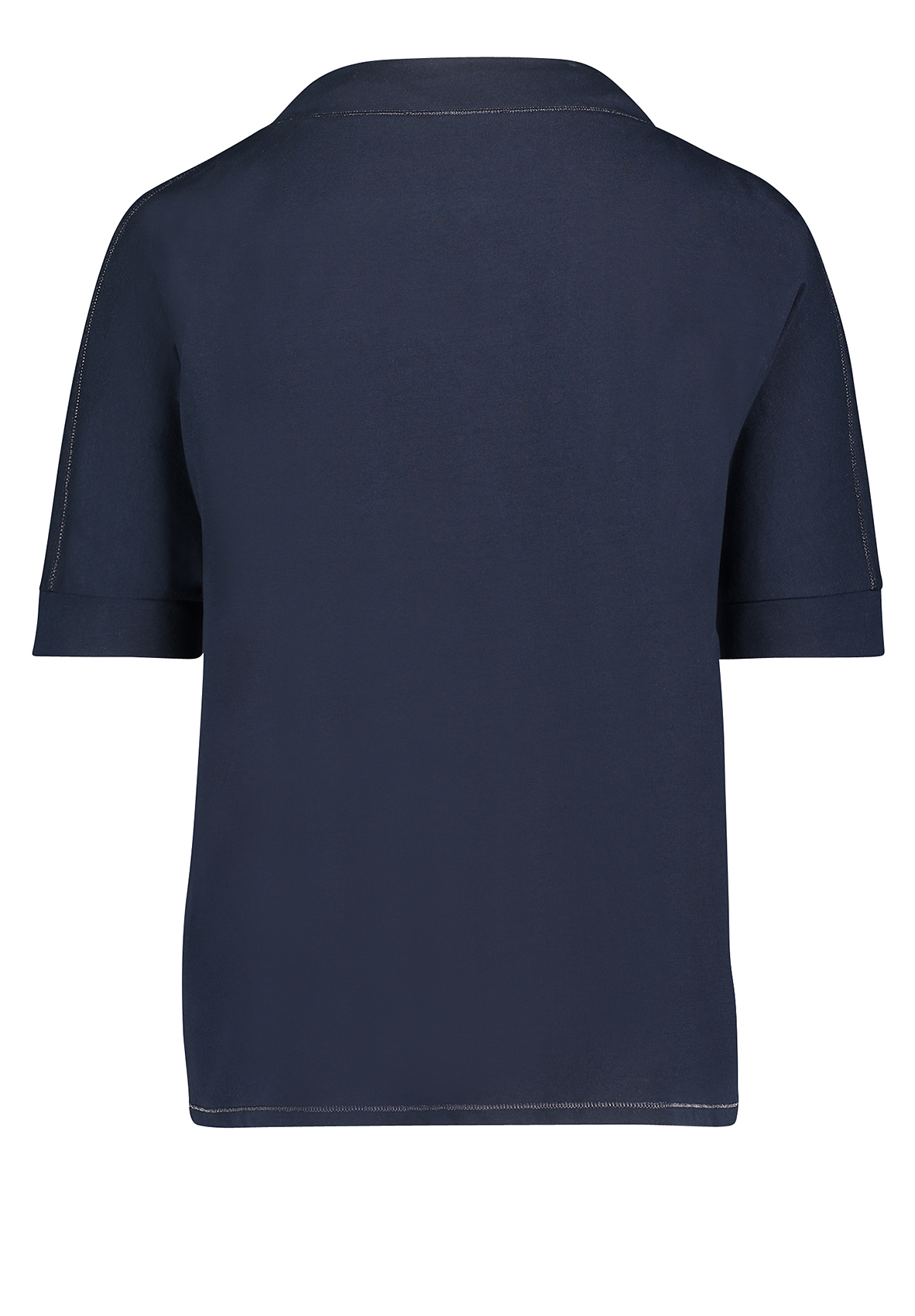 Футболка свободного покроя в стиле кэжуал. Широкая горловина с завязками, рукава 1/2 с подворотами. Металлизированный принт и декор пайетками придают образу демократичный вид. Декоративная отстрочка с нитью люрекса. Приятный к телу материал из смеси хлопка и модала. Эта модель создает непринужденный образ и великолепно подходит для прогулок и встреч с друзьями.