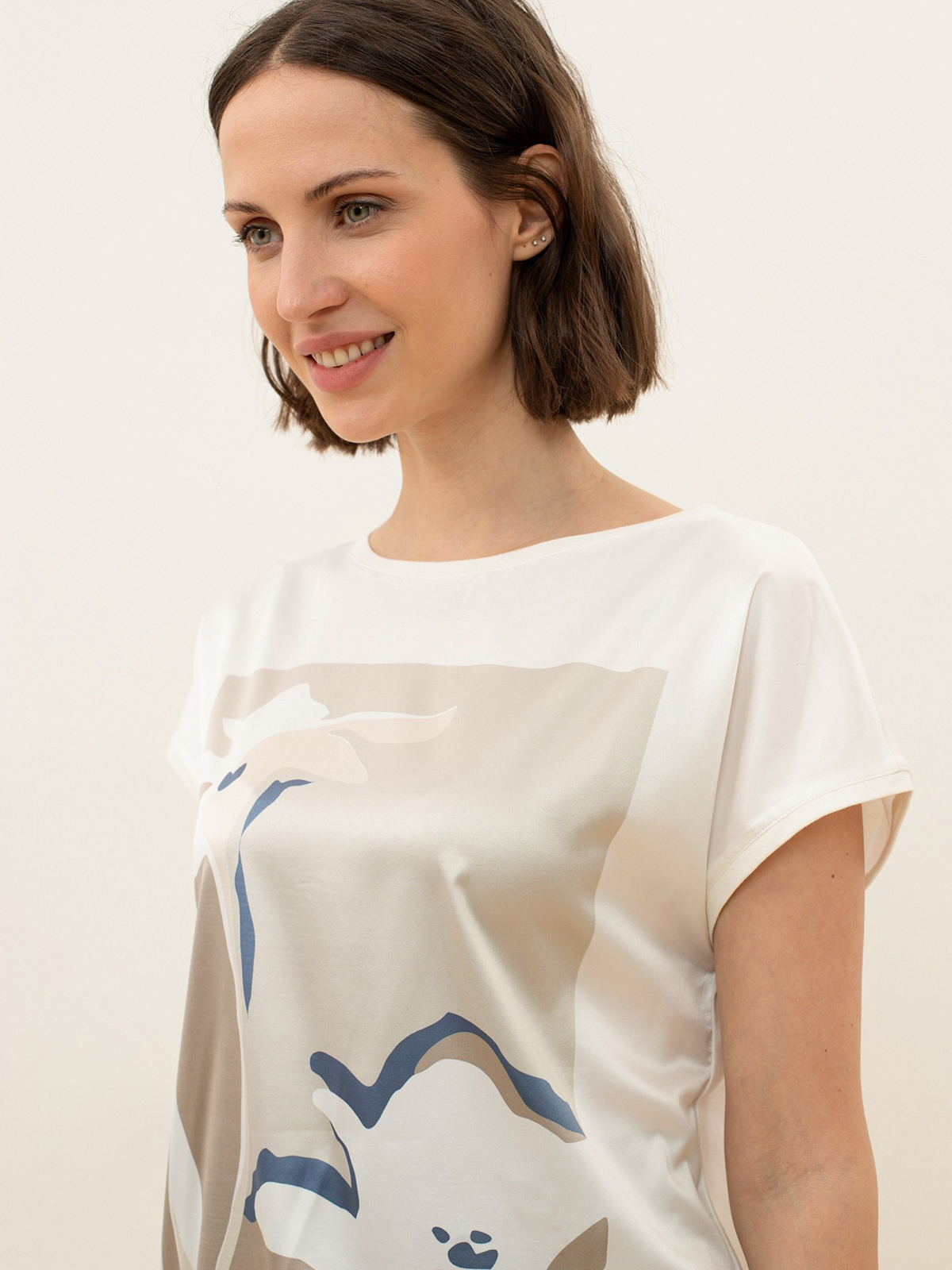 Комбинированный топ из хлопкового трикотажа с принтом. Передняя часть: атласная ткань с принтом. Задняя часть: 95% хлопок.