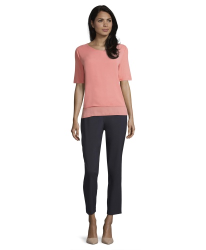 Базовая модель - однотонная футболка прямого кроя. Рукава 1/2, V-образный вырез горловины. Материал из вискозной смеси приятен к телу и обеспечивает комфорт. В сочетании с брюками футболка создает очень элегантный образ.