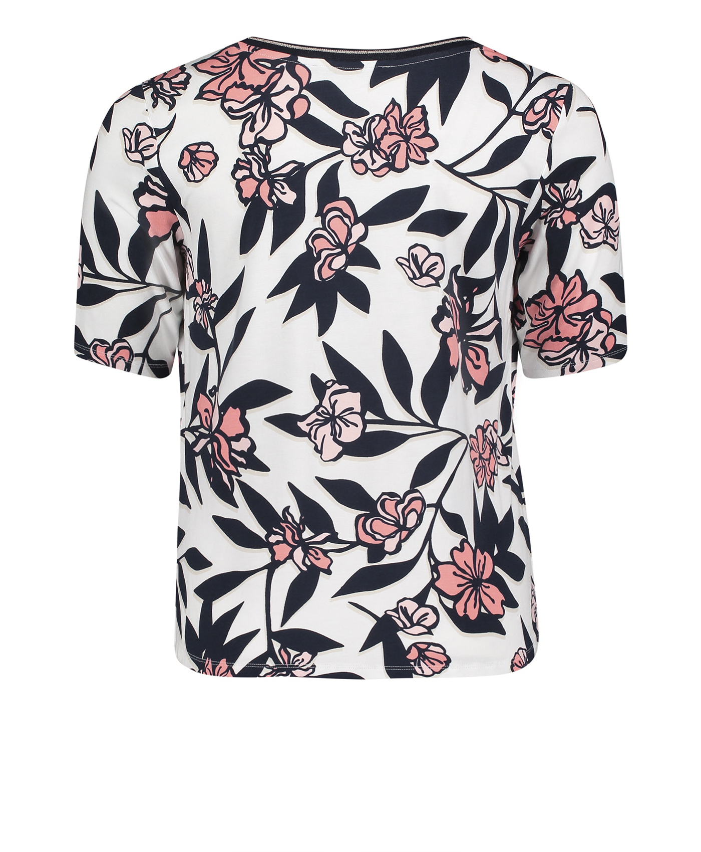 Цветочный принт - непреходящий тренд! Прямой покрой, круглый вырез горловины, рукава 1/2. Вискозная смесь приятна к телу и обеспечивает комфорт. Эта футболка идеально сочетается с любым однотонным низом и обувью.