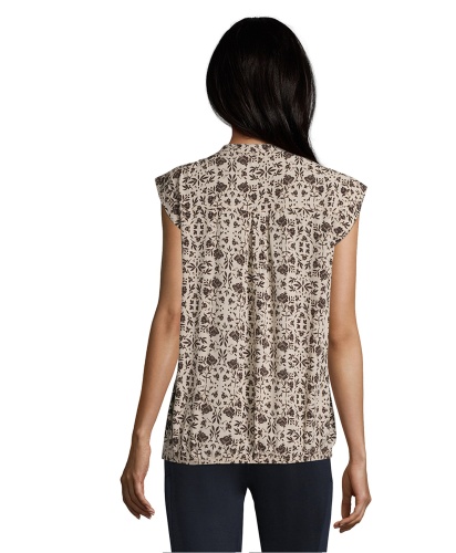 Цветочный принт в тренде! Топ свободного покроя с короткими рукавами и V-образным вырезом горловины. Вискозный материал приятен к телу и обеспечивает максимальный комфорт. Эта современная модель - идеальный компаньон для любого однотонного варианта низа.