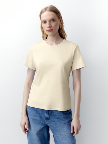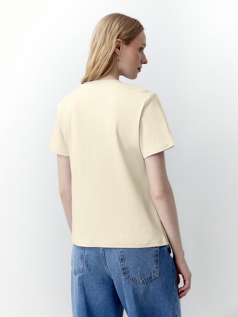 Футболка прямого силуэта свежего лимонного цвета будет прекрасно сочетаться как с денимными изделиями, так и с классическими ансамблями.Имеет шелковистый блеск и не деформируется после стирок, практически не мнется и не выцветает со временем.