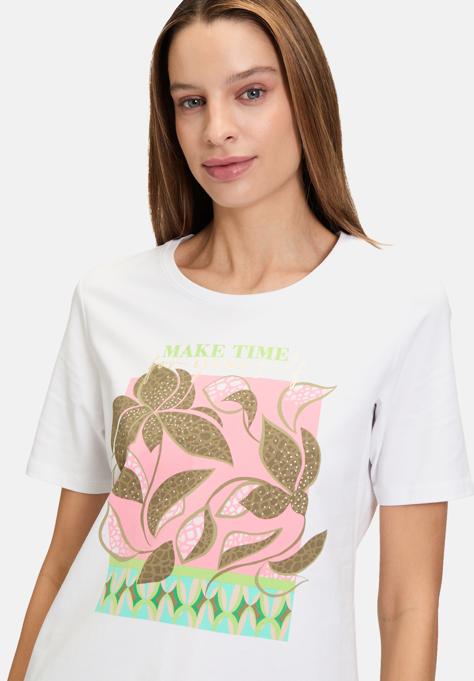 Эта слегка приталенная базовая рубашка с короткими рукавами и круглым вырезом впечатляет эффектным дизайном и сверкающими стразами. Облегающий крой создаёт женственный силуэт. Рубашка идеально подходит для стильного повседневного образа и прекрасно сочетается с различными вещами.