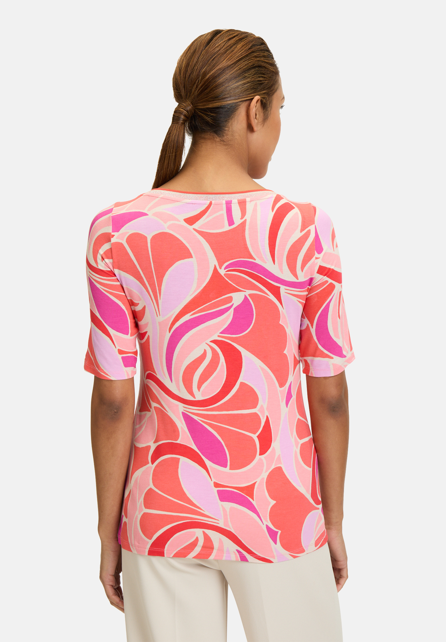 Ищете эффектную вещь? Тогда эта рубашка с принтом Betty Barclay — то, что вам нужно. Современные цвета и цветочный принт, дополненный мелкими блестками, делают эту рубашку поистине особенной. Эта повседневная рубашка дополнена вырезом-лодочкой. Помимо тонкого трикотажа, спущенные рукава обеспечивают комфортную посадку. Эта повседневная рубашка идеально подходит для вашего следующего отдыха!