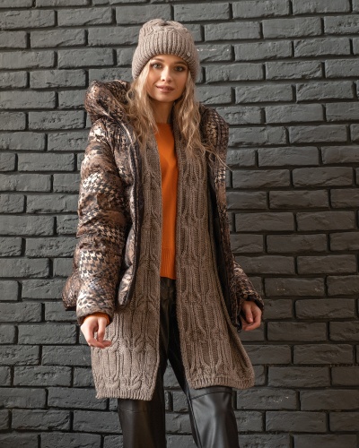 Шапка-бини с узором из кос отлично сочетается как с курткой, так и с пальто классического кроя. Изюминка модели - аккуратный металлический лейбл STERN. Модель универсальна и украсит любой овал лица. Теплая и приятная смесовая пряжа.