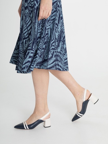 Элегантные туфли из натуральной кожи. Открытая пятка, заостренный нос. Высота каблука: 6. Универсальная расцветка дополнит образы различных стилей.