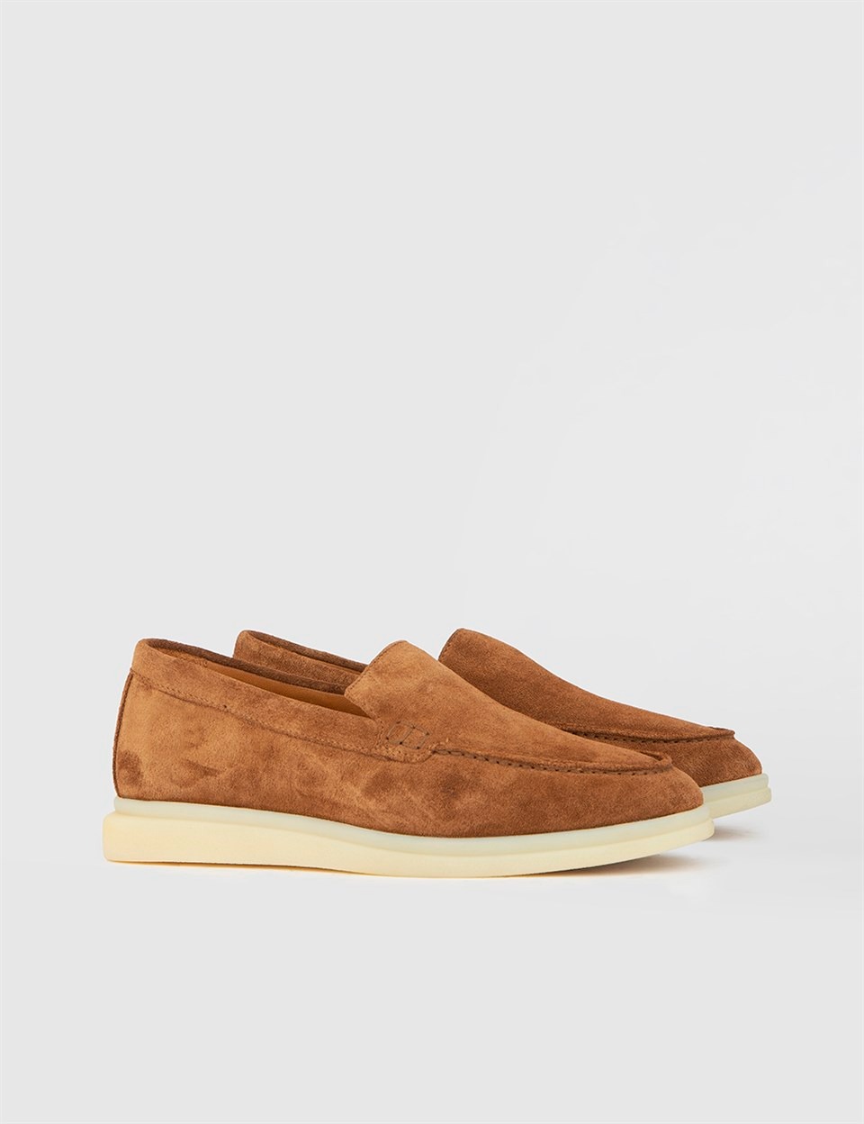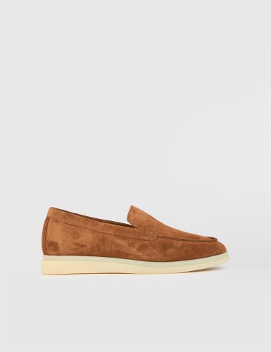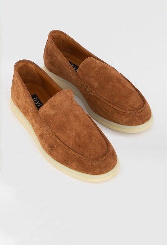 Коричневые замшевые кожаные женские лоферы. Изготовлено из высококачественной телячьей кожи. Bысота подошвы: 2 см. Резиновая подошва. Ручная работа.