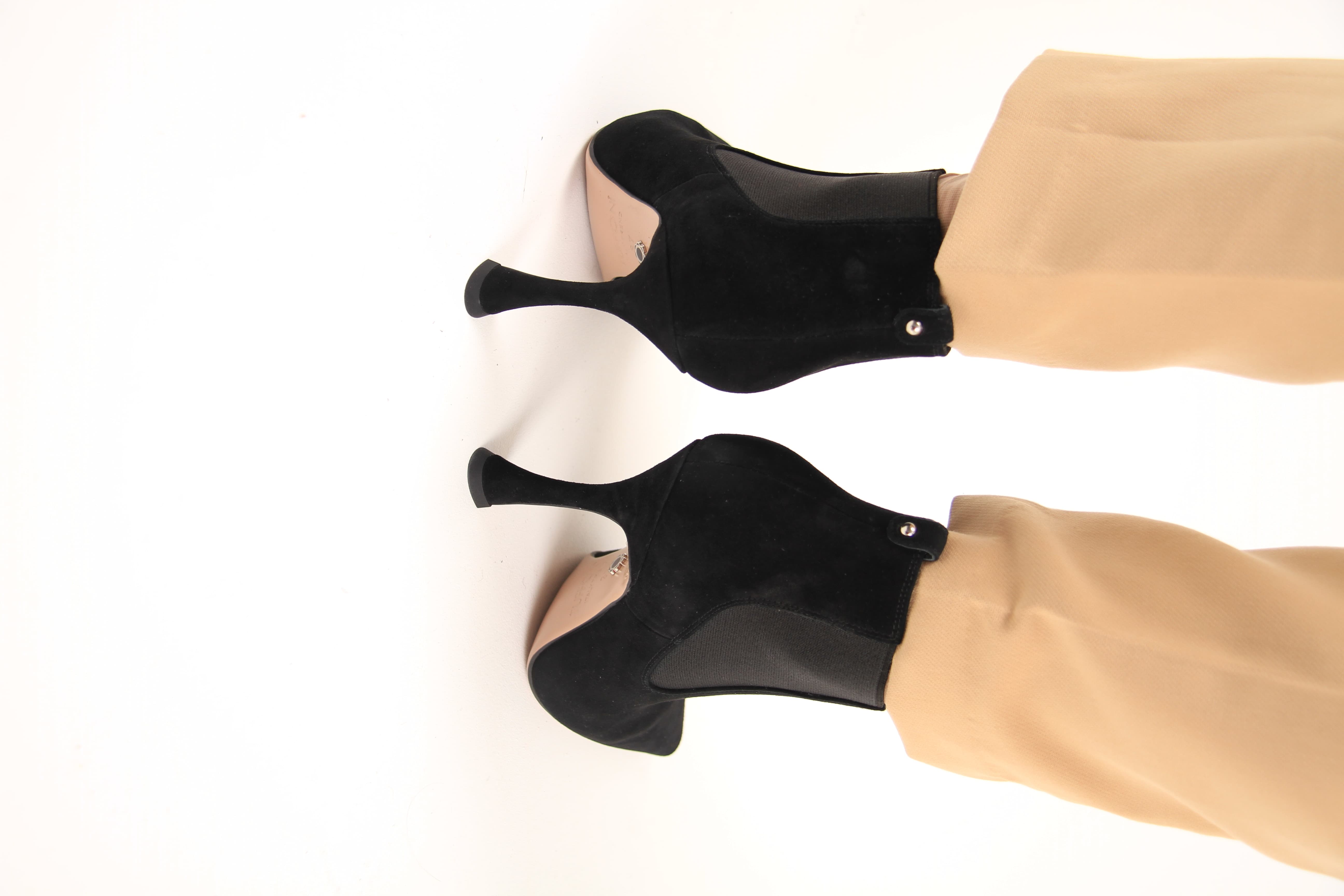 Ботильоны из натуральной замши. Высота каблука: 8,5 см.