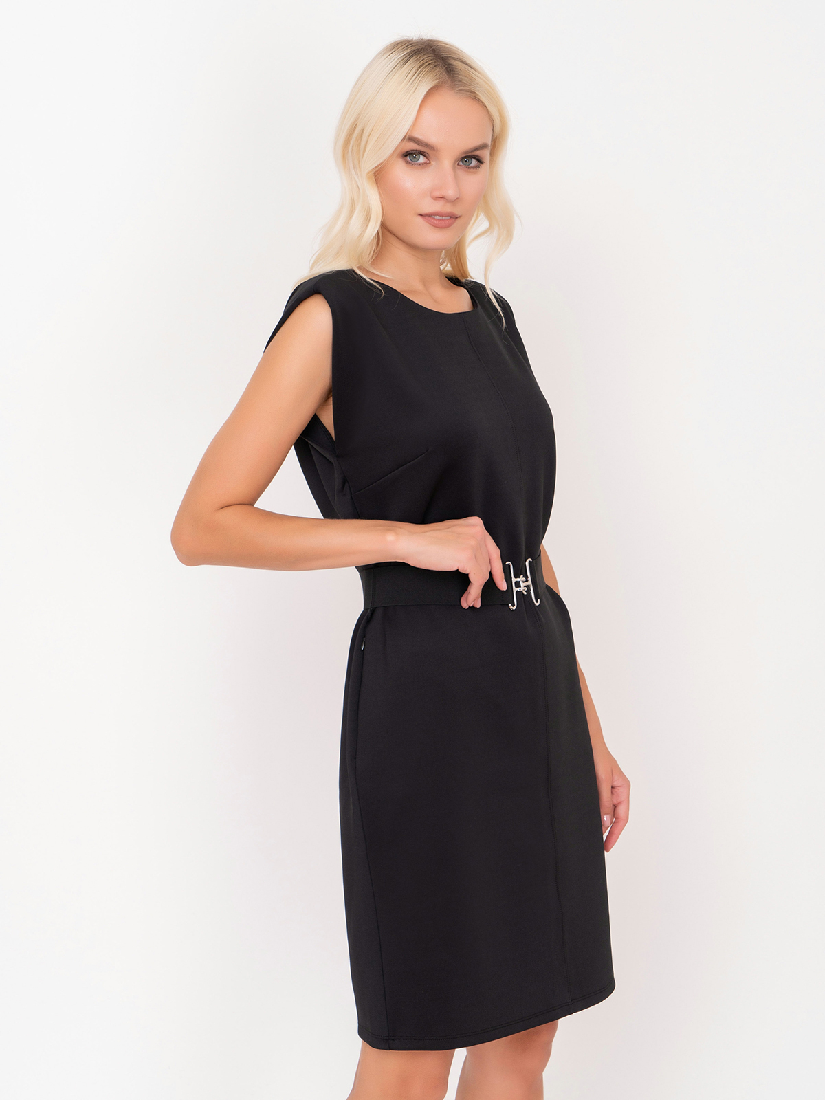 Черное мини-платье прямого кроя – универсальный вариант для любого повода – в офис, на встречу, вечернее мероприятие. Круглый вырез горловины, рукава отсутствуют.