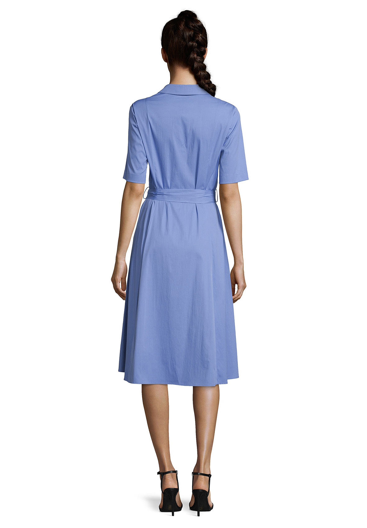 Трендовая модель - платье-рубашка! Платье миди А-силуэта с поясом из основной ткани. Рубашечный вороник, застежка на пуговицах спереди, рукава 1/2. Приятный к телу материал из хлопковой смеси. Это платье обеспечивает создание стильного образа с любым вариантом обуви.