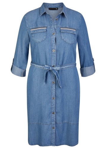 Однотонное платье-рубашка -базовая модель гардероба. Отложной воротничок, застежка на пуговицах, карманы на груди, рукава с патой для подворачивания. Пояс-бант подчеркивает достоинства фигуры. Трендовый принт в полоску.