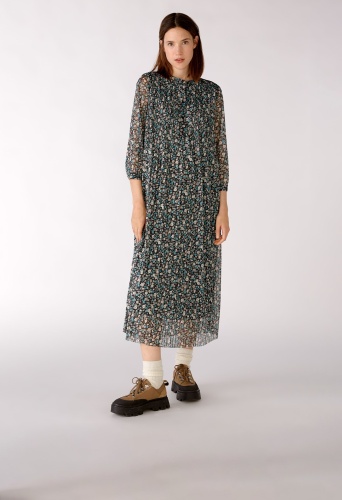 На сайте указаны российские размеры. Свободное макси-платье со складками и принтом. Прозрачная сетка по всей поверхности. Повседневная, непринужденная посадка. Текущая длина миди. Облегающие складки на верхней части туловища, свободные и струящиеся в области юбки. Модель на подкладке.