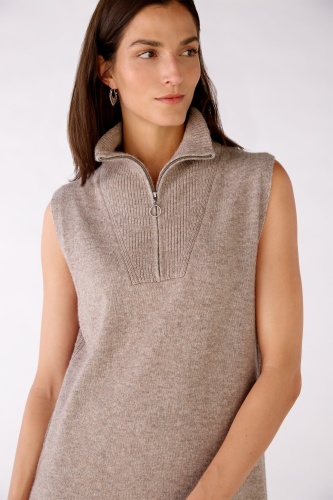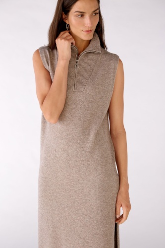 На сайте указаны российские размеры. Мягкое трикотажное платье OUI с модной деталью: воротником на молнии. Мягкая смесь шерсти, простой трикотаж. Повседневный крой со спущенными плечами, прямой трикотаж, длина миди. Двойной тройной воротник-стойка. Молния спереди, заканчивается воротником. Детали в рубчик и разрезы по бокам. Длина в размере 42: 102 см. Рост модели 178 см.