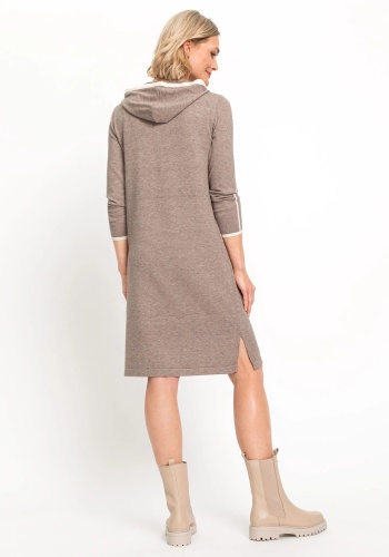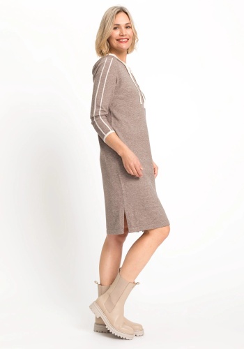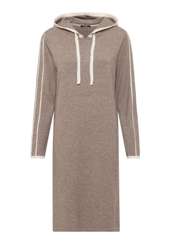 На сайте указаны российские размеры. Платье-свитер, выполненное из мягкой меланжевой пряжи и функциональной кулиской, украшено спортивными полосками на рукавах, придающими изделию особую нотку.
