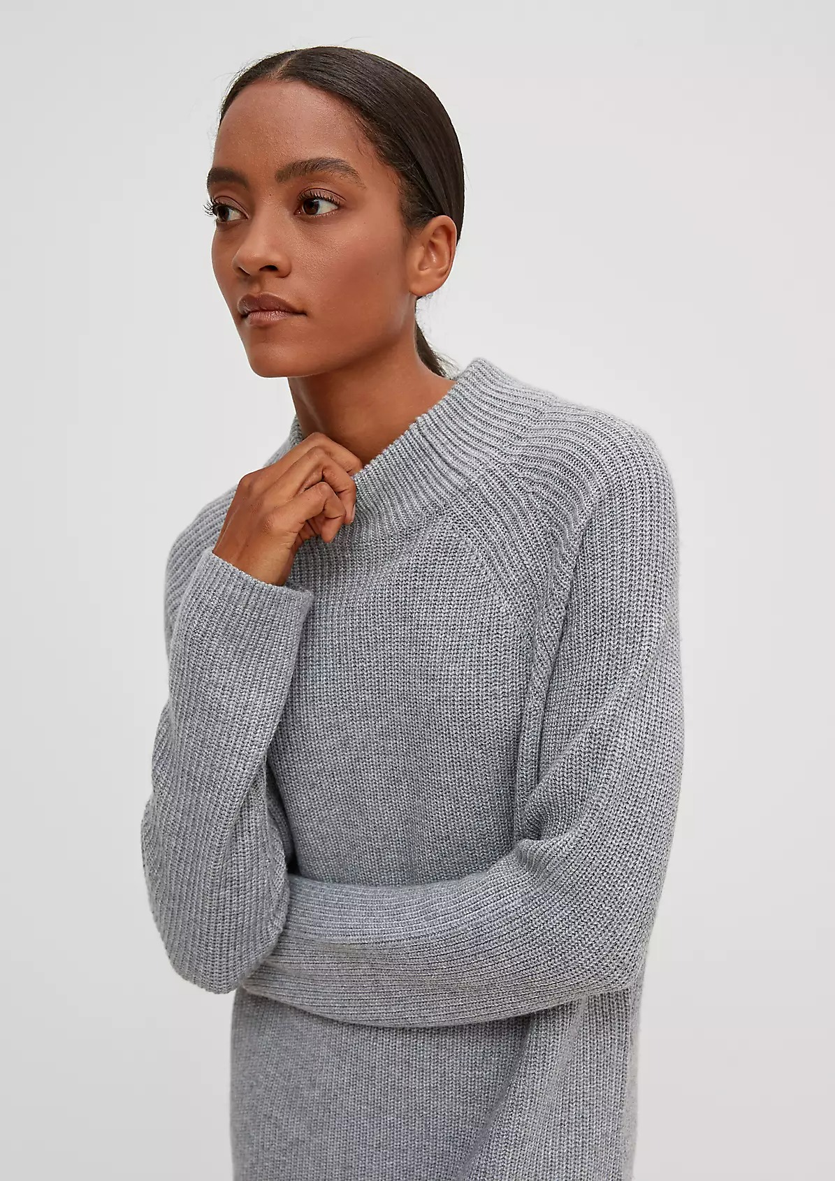 На сайте указаны российские размеры. Трикотажное платье из смесовой шерсти с кашемиром длины миди. Длинные рукава. Подол с разрезами по бокам. Длина для размера 42 около 113 см. Рост модели 177 см.