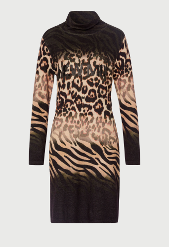 Одна из наиболее часто встречающихся модных тенденций текущего сезона – вязаные платья самых разнообразных фасонов. Эту модель водолазки с длинными рукавами чрезвычайно удобно носить благодаря прямому крою и мягкому тонкому трикотажу. Градиентный животный принт. ПЛАТЬЕ В ПРОДАЖЕ БЕЗ НАДПИСИ НА ГРУДИ.