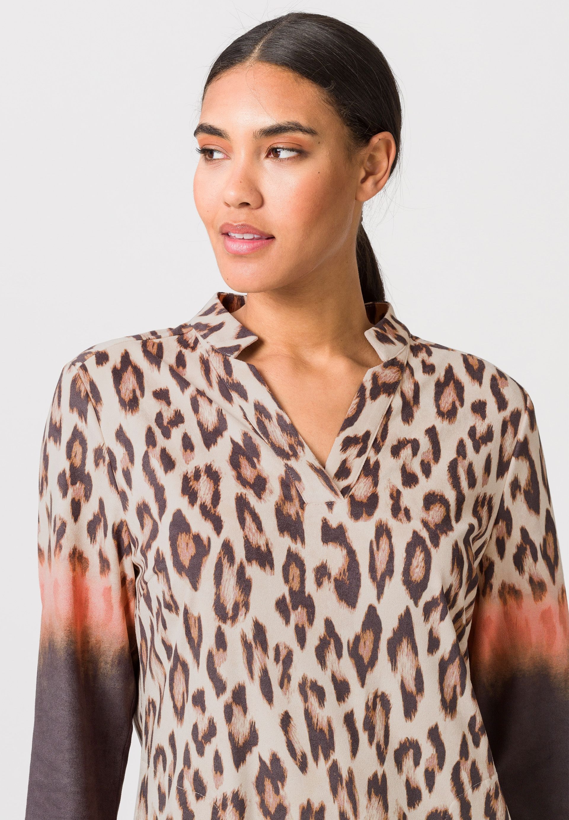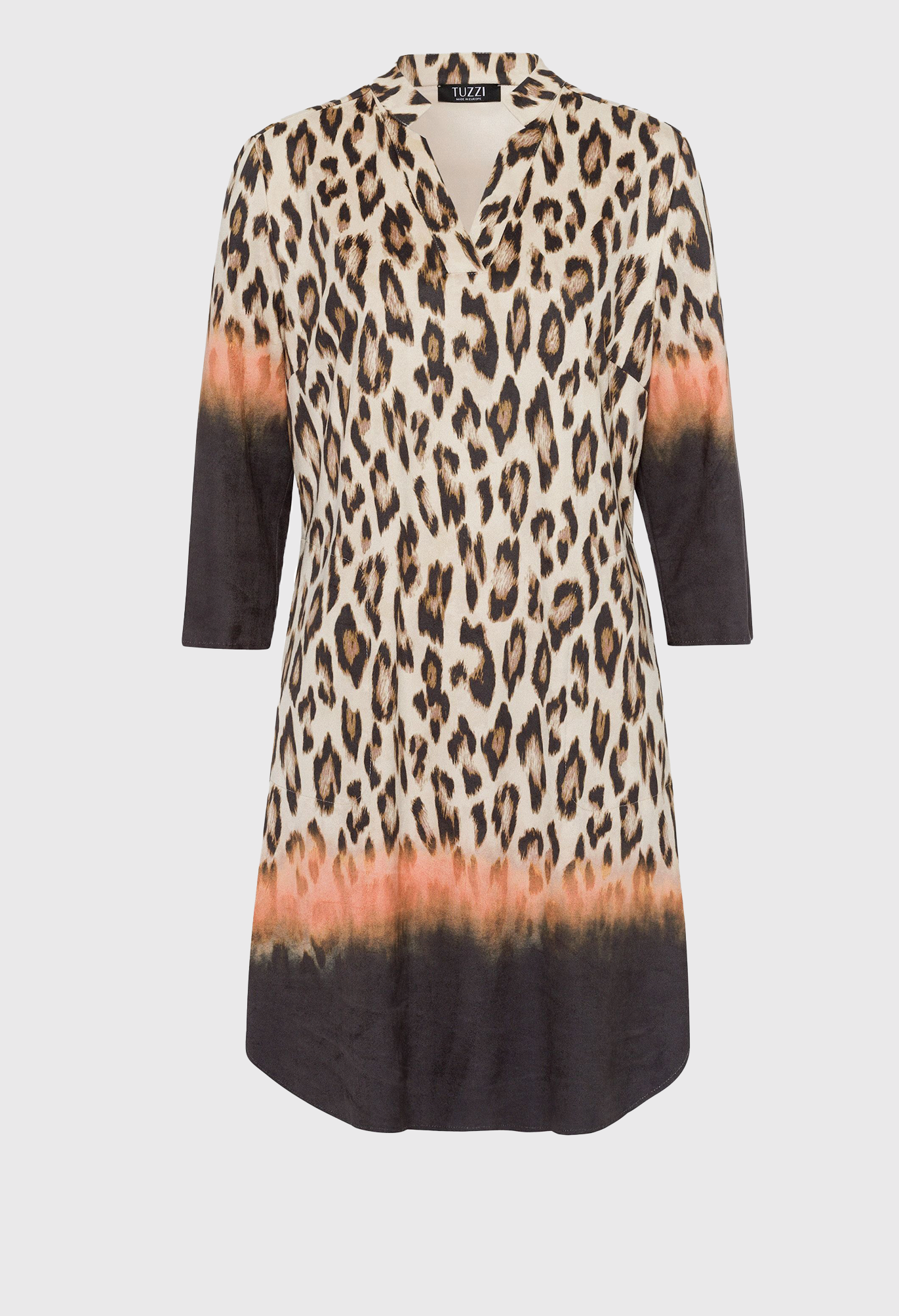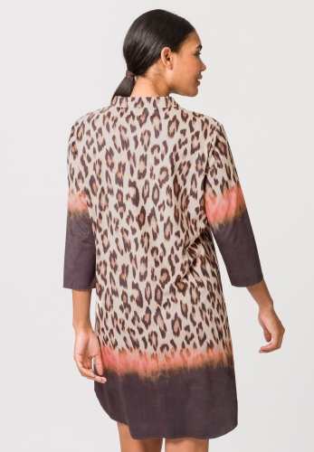 Платье женское с узким воротником-стойкой и V-образным вырезом. Животные принты — это классика молодежного, стильного повседневного гардероба, и она определенно останется таковой надолго. Поэтому неудивительно, что следящие за модой женщины год за годом включают рисунки животных в свой гардероб, как это видно на этом облегающем фигуру платье. Особая изюминка этого платья: качество джерси с мягкой шероховатой поверхностью придает классному дизайну с принтом элегантную замшевую отделку. Боковые карманы и рукава длиной 3/4 придают модели спортивный вид.