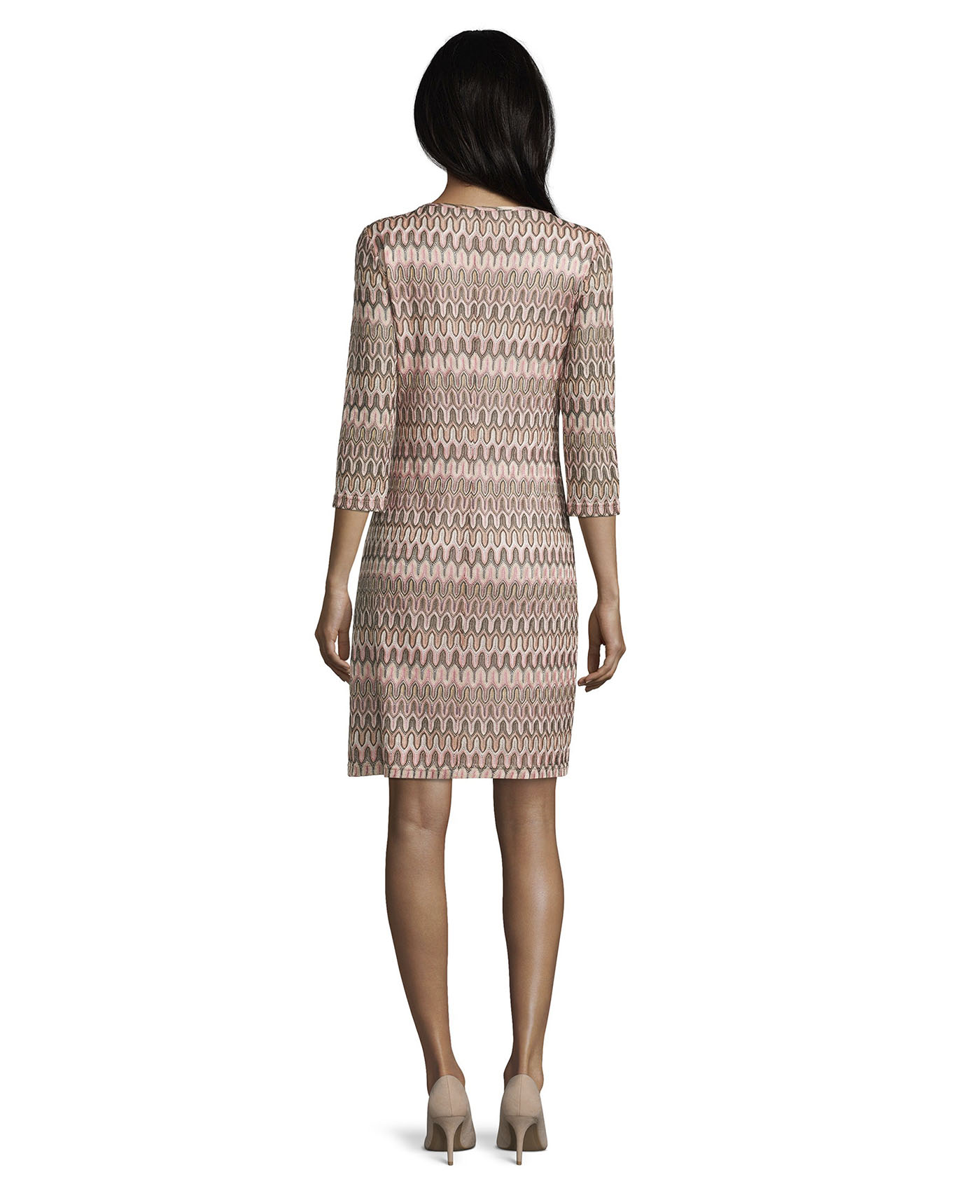 Платье мини - потрясающая летняя модель. Приталенный силуэт, рукава 3/4, универсальный геометрический принт. Как на каблуках, так и в спортивной обуви - вы будете на высоте!