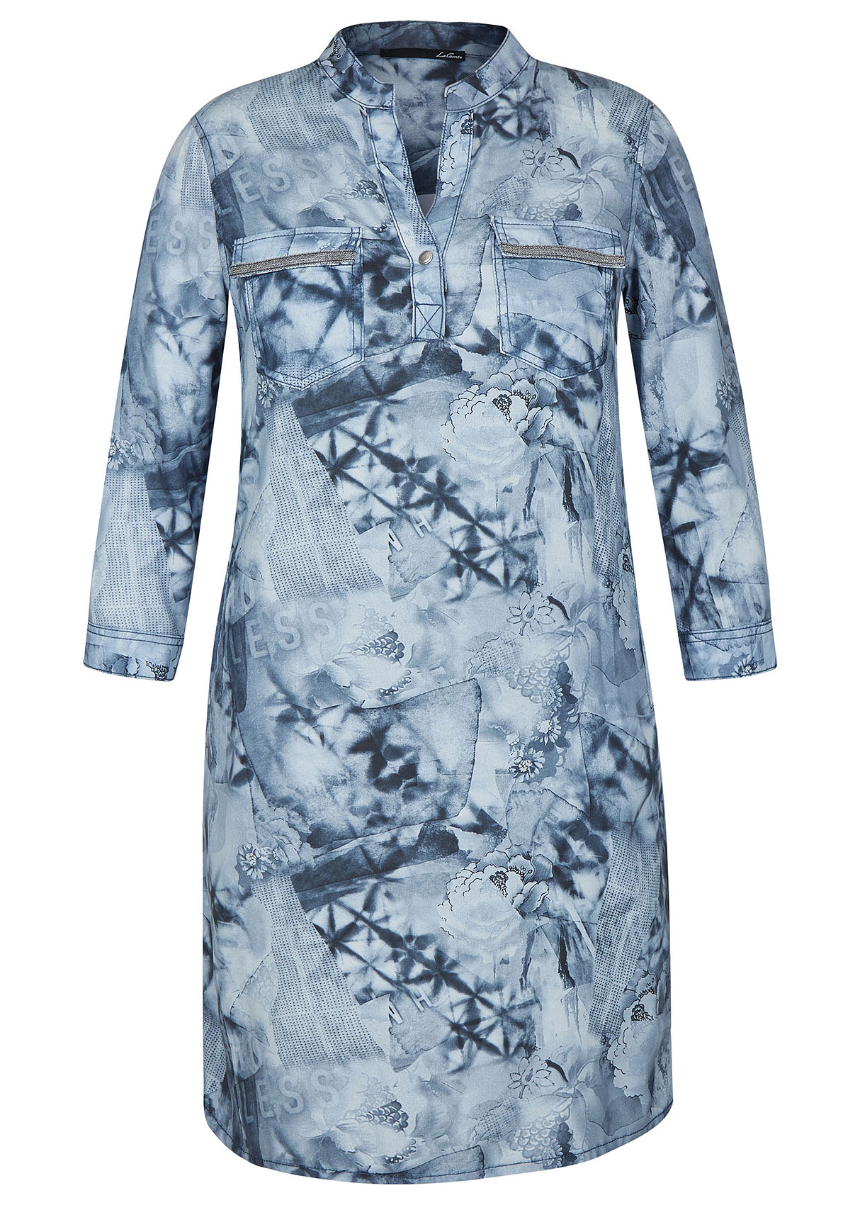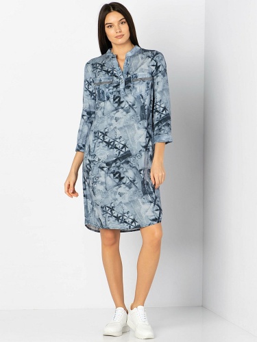 Платье из тенсела. Длина миди. V-образный вырез горловины, рукава 3/4, накладные карманы. Принт с изображением цветов и легким эффектом батика. Длина изделия по спинке: 70 см.