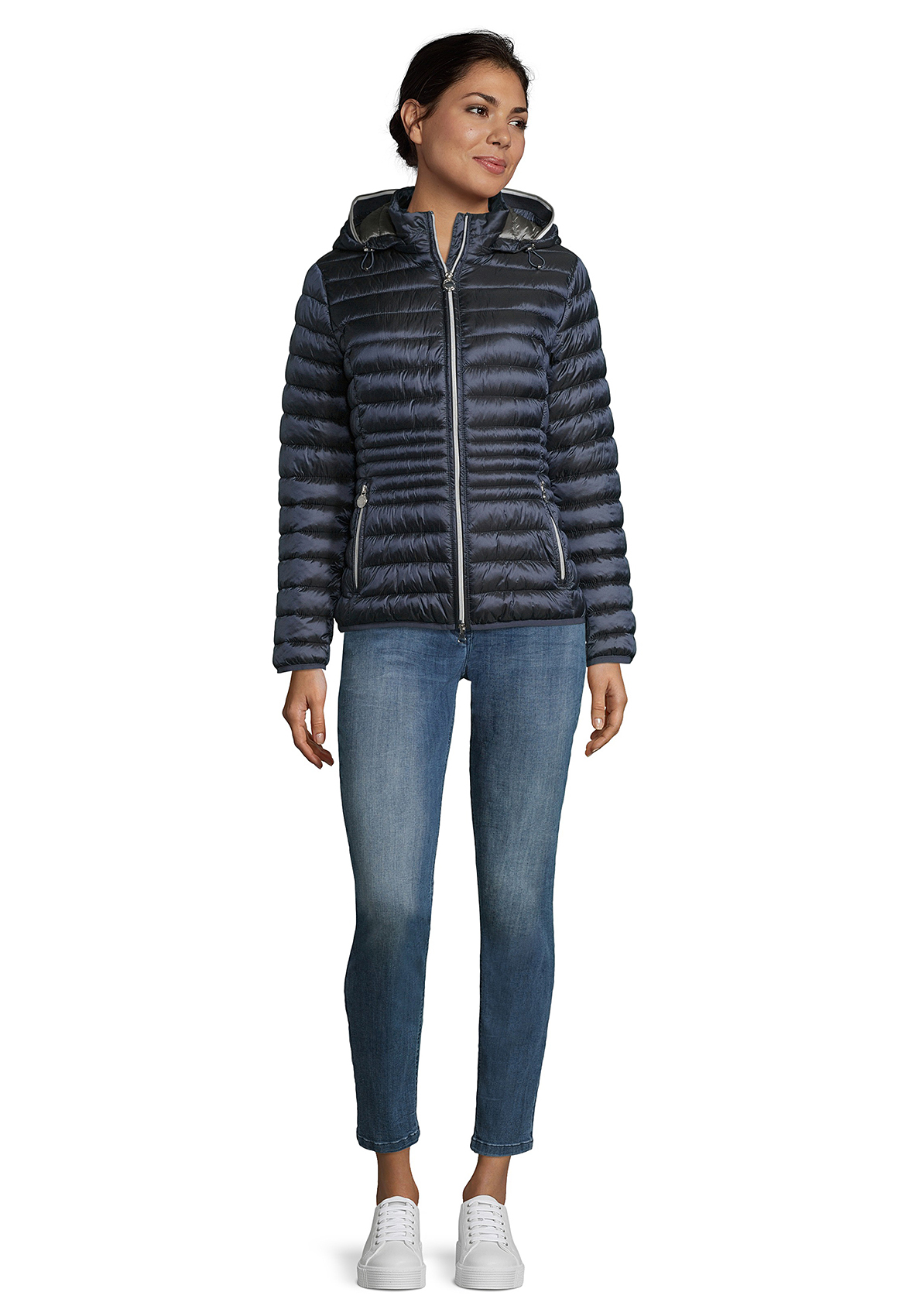 Куртка на облегченном синтепоне - то, что нужно для демисезона! Слегка прилегающий силуэт, практичный воротник-стойка, съемный капюшон на кулиске, удобная двойная застежка-молния, карманы на молниях.