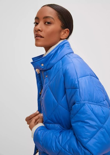 На сайте указаны российские размеры. Утепленная стеганая куртка с потайной молнией. Воротник-стойка. Рукава «летучая мышь», длинные рукава, манжеты. Накладной карман. Длина спины: 57 см в размере 42.