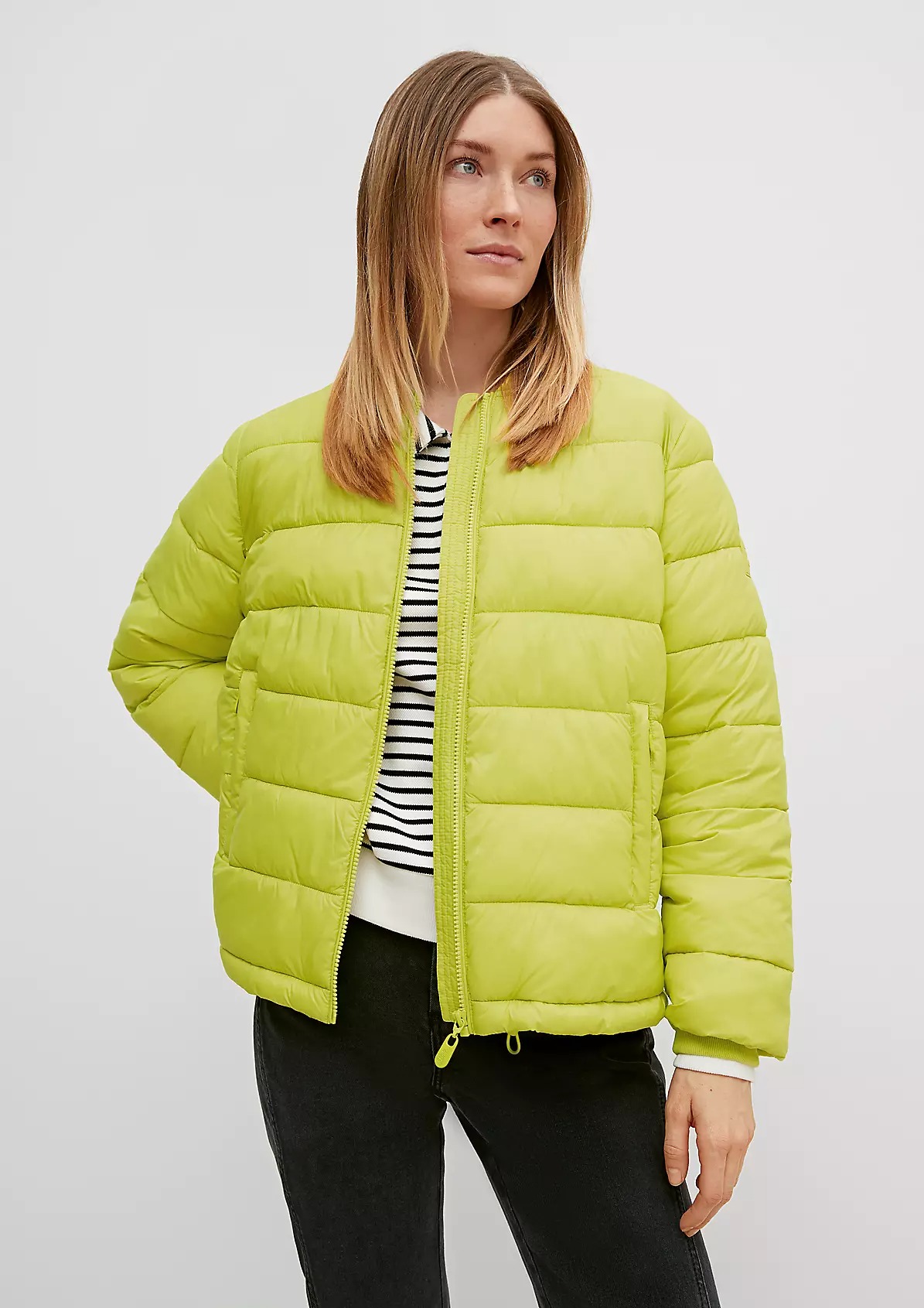 На сайте указаны российские размеры. Стеганая укороченная куртка свободного кроя. Застежка на молнию. Длинные рукава с ребристыми манжетами. Подол с боковой застежкой и кулиской. Карманы на молнии. Длина спины 60 см в размере 42 Рост модели 173 см.