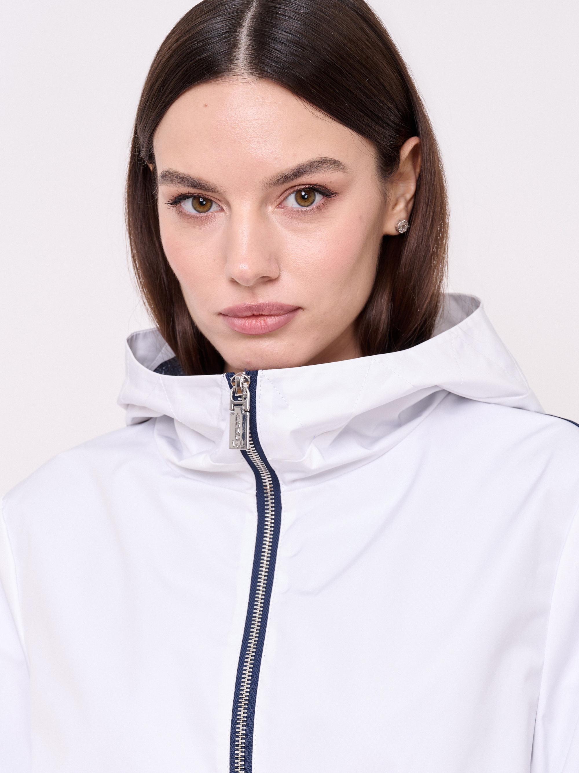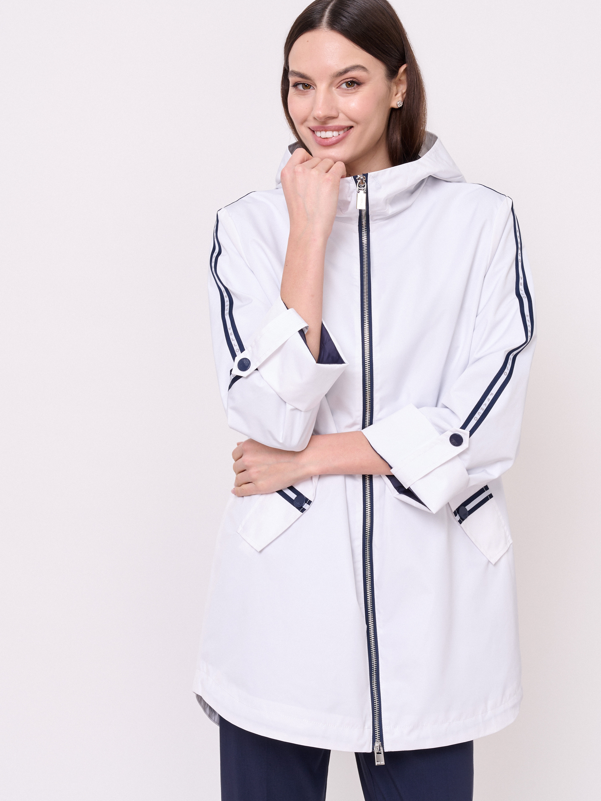 Застежка молния, несъемный капюшон, рукава длинные с хлястиками на кнопках, покрой прямой, без рисунка, без утепления, карманы прорезные с клапанами на кнопке, борты однобортное. Длина по спинке: 84 см.