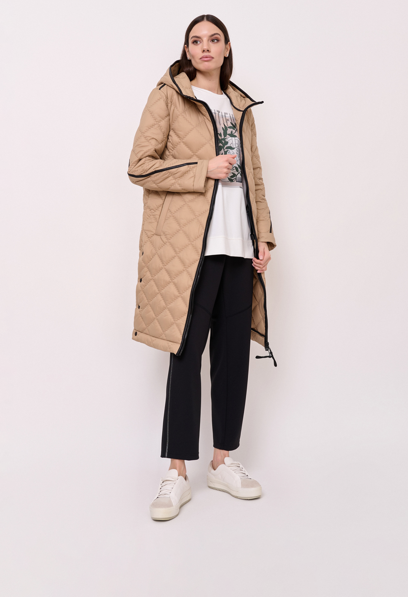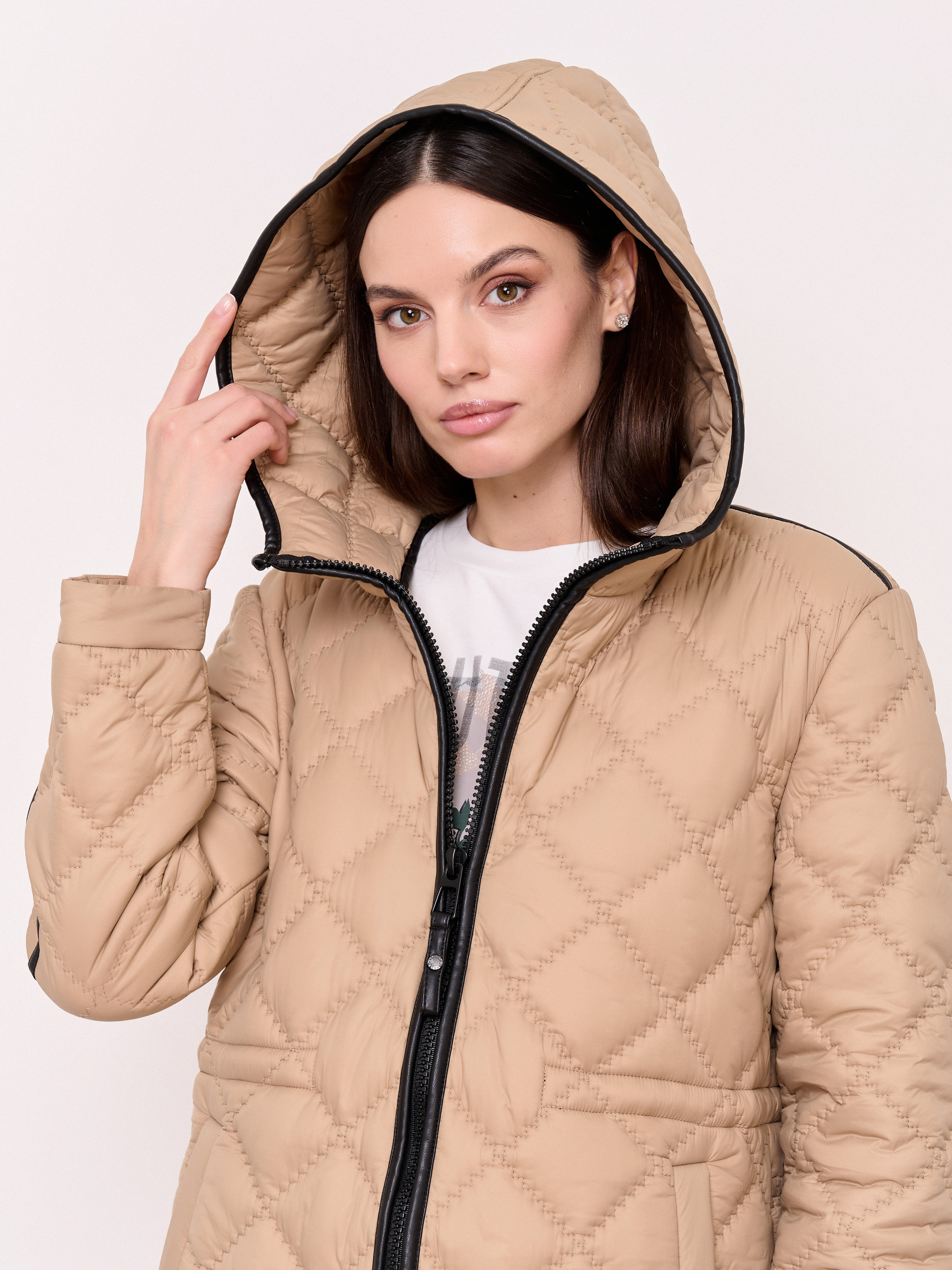 Детали: стеганое пальто, застежка молния, несъемный капюшон, рукава длинные, покрой прямой, без рисунка, утеплитель полиэстер, карманы прорезные, плотность утеплителя 150, без опушки, борты однобортное, боковые разрезы на кнопках. Плотность утеплителя: 150 см.