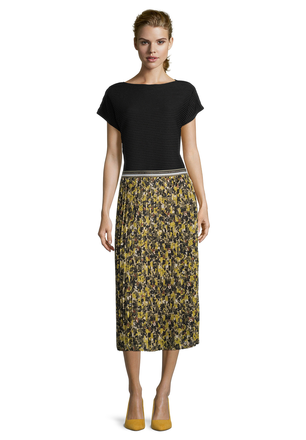 Плиссированная юбка миди - звезда модных подиумов! Принт с цветочными мотивами подчеркивает женственность обладательницы юбки. Завершает модный дизайн эластичный пояс с блестящей нитью люрекса.
