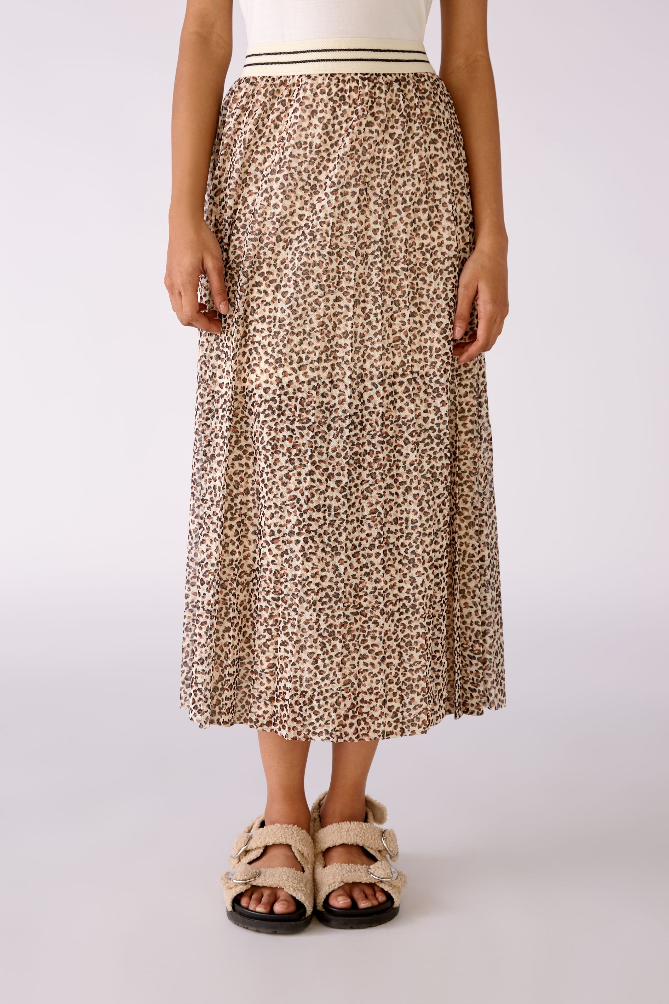 Немецкий бренд. На сайте указаны российские размеры. Плиссированная юбка из легкой сетки с леопардовым принтом. Модная длина миди и расклешенный силуэт А. Для выигрышного акцента на талии солнечные складки. Мягкий эластичный пояс добавляет юбке спортивный характер.