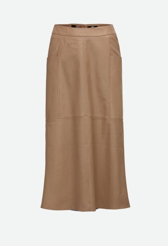 На сайте указаны Российские размеры. Юбка А-силуэта длиной до колена из мягкой гладкой кожи наппа с двумя прорезными карманами справа и слева привлекает внимание. Коробчатая складка на спине обеспечивает комфортную свободу движений. Сочетайте его со струящимися блестящими топами, чтобы создать изысканный образ, или с тонким трикотажем, чтобы создать более повседневный образ. Рост модели на фото - 176 см