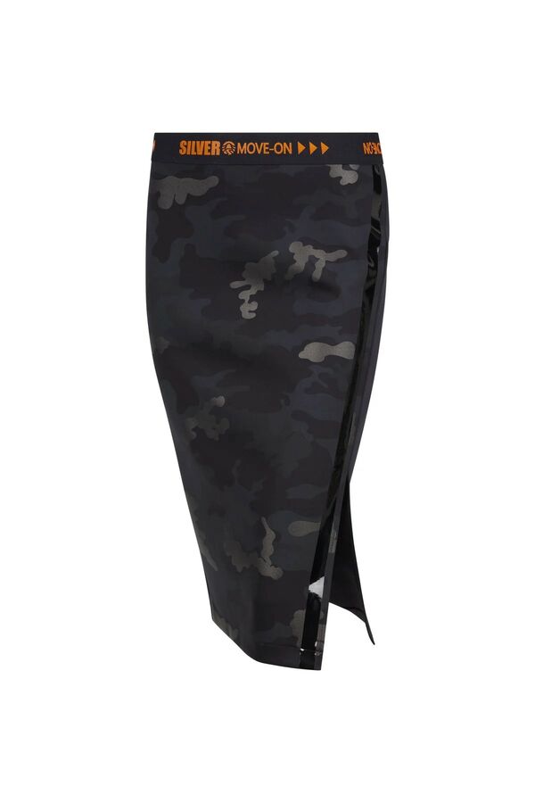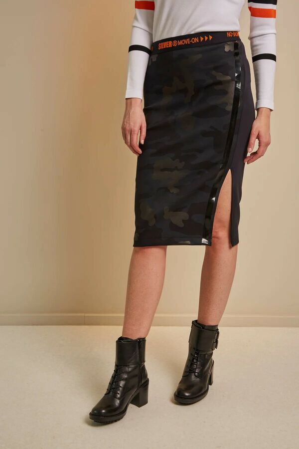 На сайте указаны российские размеры. Элегантная юбка-карандаш с камуфляжным принтом спереди.