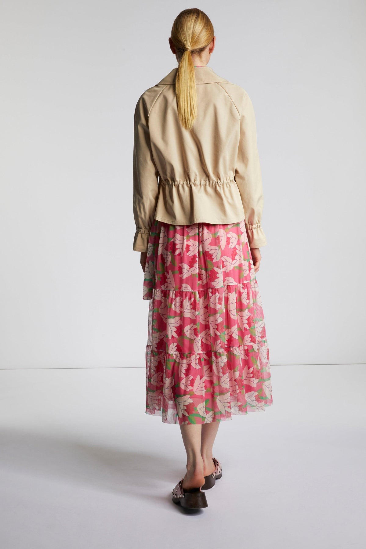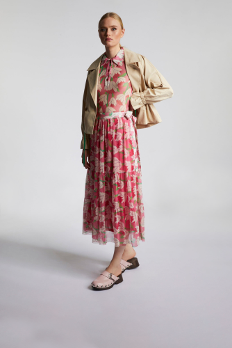 Эта юбка с воланами А-силуэта невероятно игрива. Она также привлекает цветочным принтом по всей поверхности. Романтичный пояс на эластичном поясе — приятная деталь. Длина миди подчеркивает легкость и женственность. Длина в размере 42: 88см