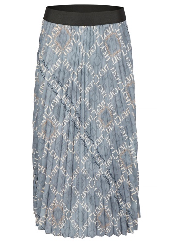 Плиссированная юбка с принтом длины миди. Эластичный контрастный пояс обеспечивает комфортную посадку.
