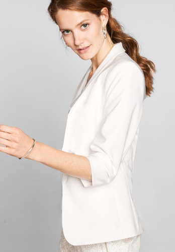 Элегантный жакет Inez уместен на мероприятиях самого высокого уровня. Шикарный жакет с модными сборенными рукавами очень удобен в ношении благодаря качественному материалу с эластаном. Застежка на крючке, карманы, отложной воротник. Женственный слегка приталенный силуэт. Жакет абсолютно необходим в вашем гардеробе и идеально подходит для любого случая! • шикарный жакет со сборенными рукавами • приятная к телу эластичная ткань • застежка на крючке, карманы • слегка приталенный силуэт, отложной воротник • длина около 62 см