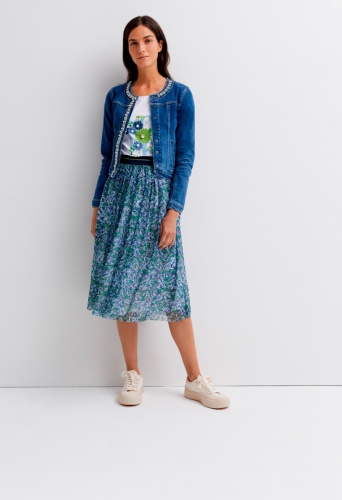 Джинсовая куртка с узкой талией. Универсальная модель сочетается с любимым образом: от классического до повседневого. Украшена декоративными стразами вдоль планки и выреза, а так же двумя наклонными карманами. Застегивается на потайные кнопки. Длина в размере 44 = 50см