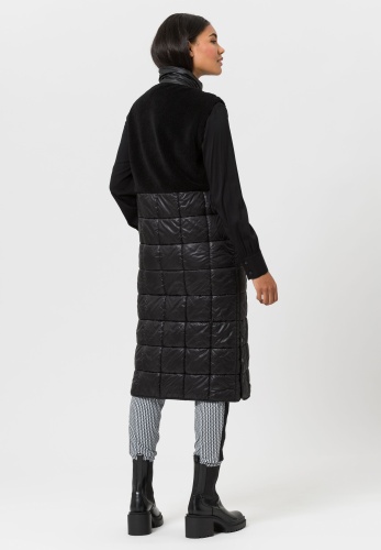 На сайте указаны российские размеры. Жилет с отделкой из искусственного меха в области плеч и груди, которые переходят в квадратный стеганый рисунок на уровне талии. Сквозная панель с кнопками легко открывается и закрывается. Высокий воротник, пуговицы по низу и боковые карманы делают образ идеальным.