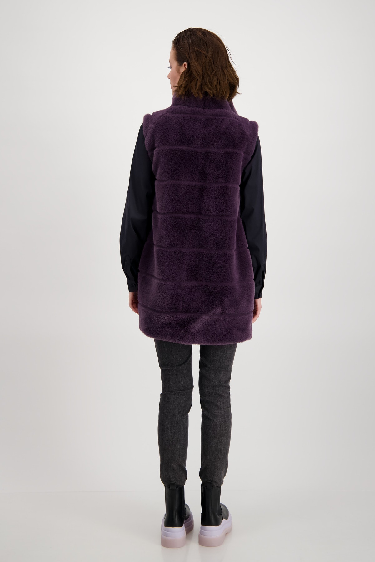На сайте указаны российские размеры. Длинный жилет из искусственного меха с воротником-стойкой. С приятным мягким жилетом из меха от monari вы сможете создать стильный образ в кратчайшие сроки. Длинная модель прямого кроя с воротником-стойкой, планкой на потайных кнопках и боковыми карманами идеально подходит для создания повседневных образов с платьями и брюками. Модель ростом 179 см.