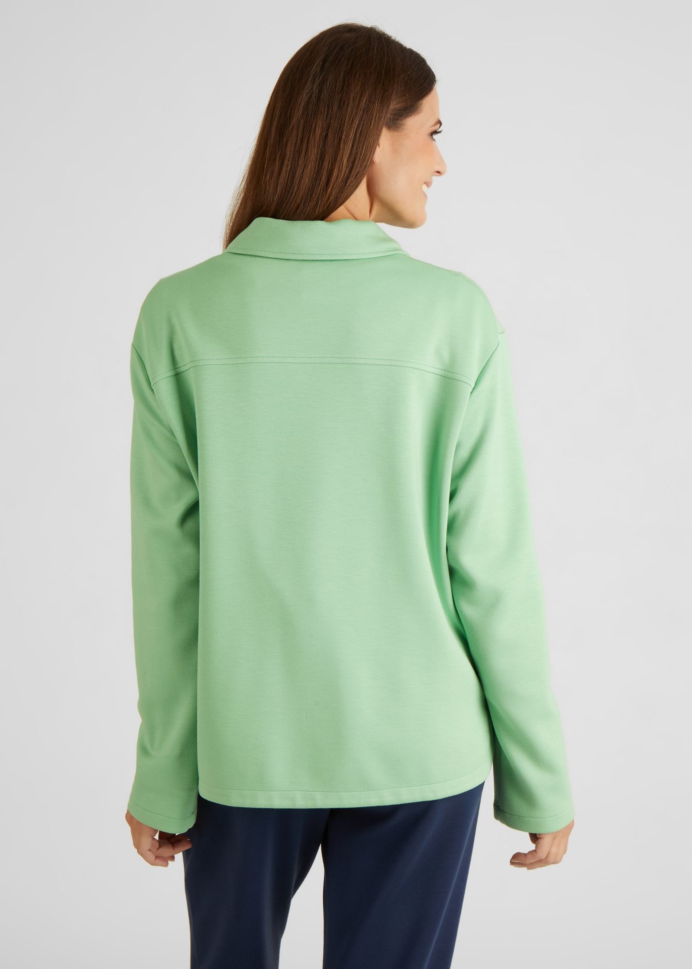 На сайте указаны российские размеры. Эта блузка-рубашка действительно привлекает внимание. Приятное, мягкое качество и широкая форма обеспечивают высокий уровень комфорта. Накладные нагрудные карманы завершают образ. Сочетайте рубашку с футболкой и джинсами. Рост модели 176 см. Длина по спинке от плеча для размера 46: 64 см.