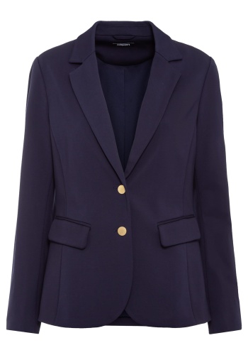 Пиджак с достаточной степенью эластичности, обеспечивающей комфорт на протяжении всего дня! Однобортный жакет с воротником-стойкой, двумя передними карманами, индивидуальными швами для придания формы и красивыми пуговицами матового золотого цвета.