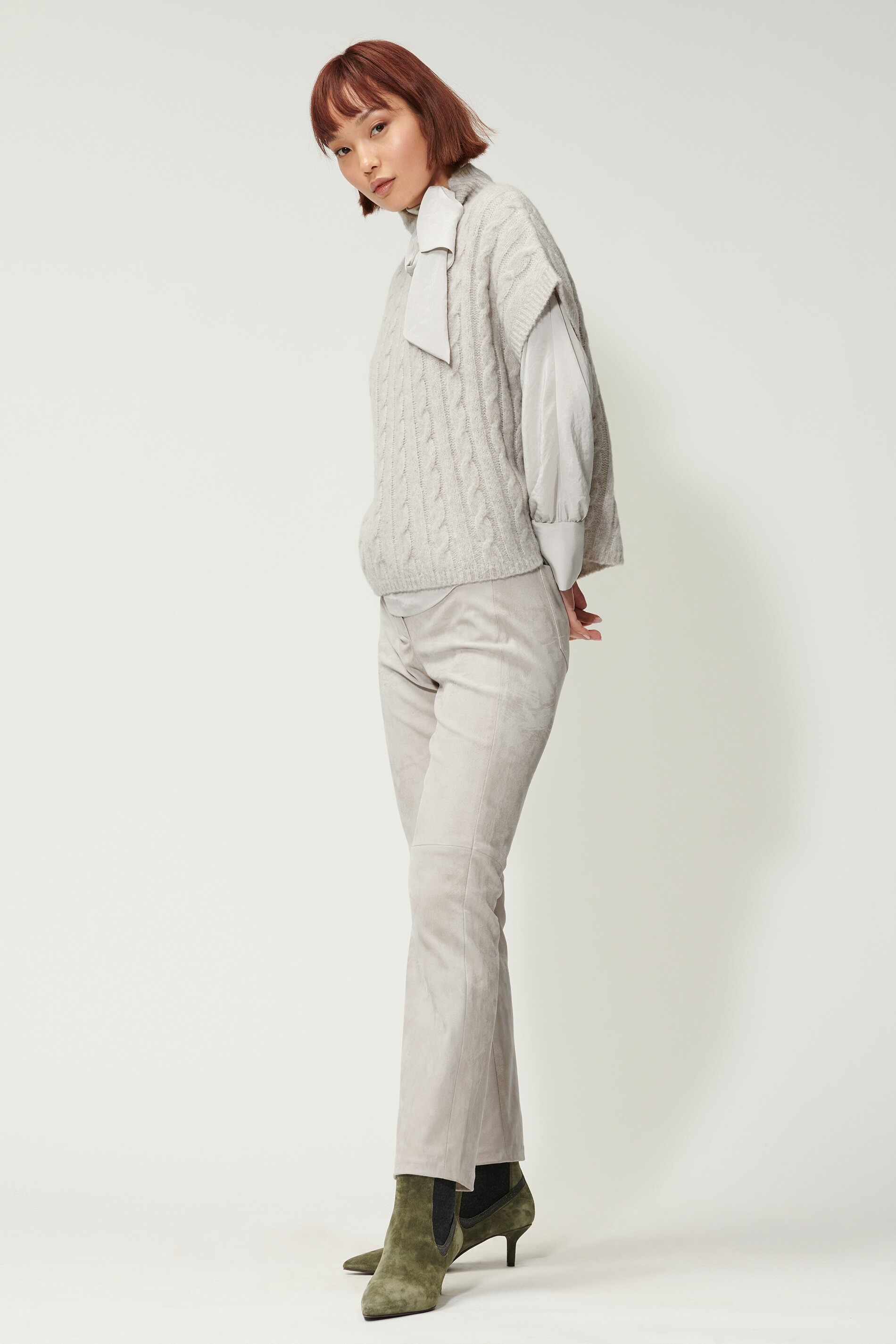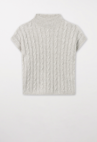 Легкий пуловер косой вязкой из высококачественной итальянской смесовой шерсти с эффектом меланжа. Объемный пуловер-кейп с ребристым воротником-водолазкой.